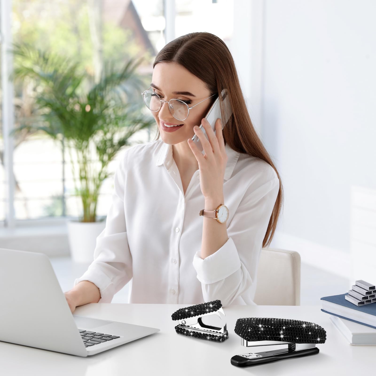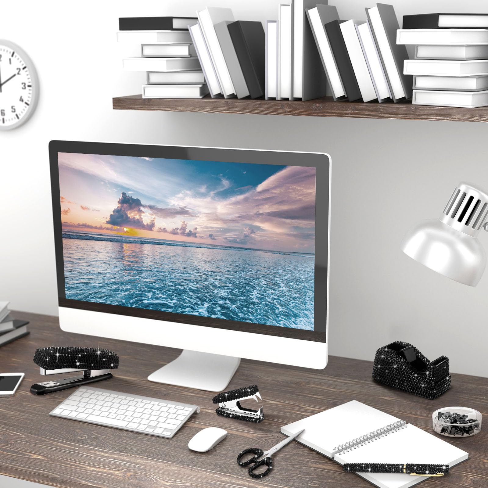 Glitter Design: bling desk accessories are designed with shiny crystal, so beautiful and outstanding on your desktop, the rhinestones are not easy to fall down, so you can put them on your desk, office or classroom