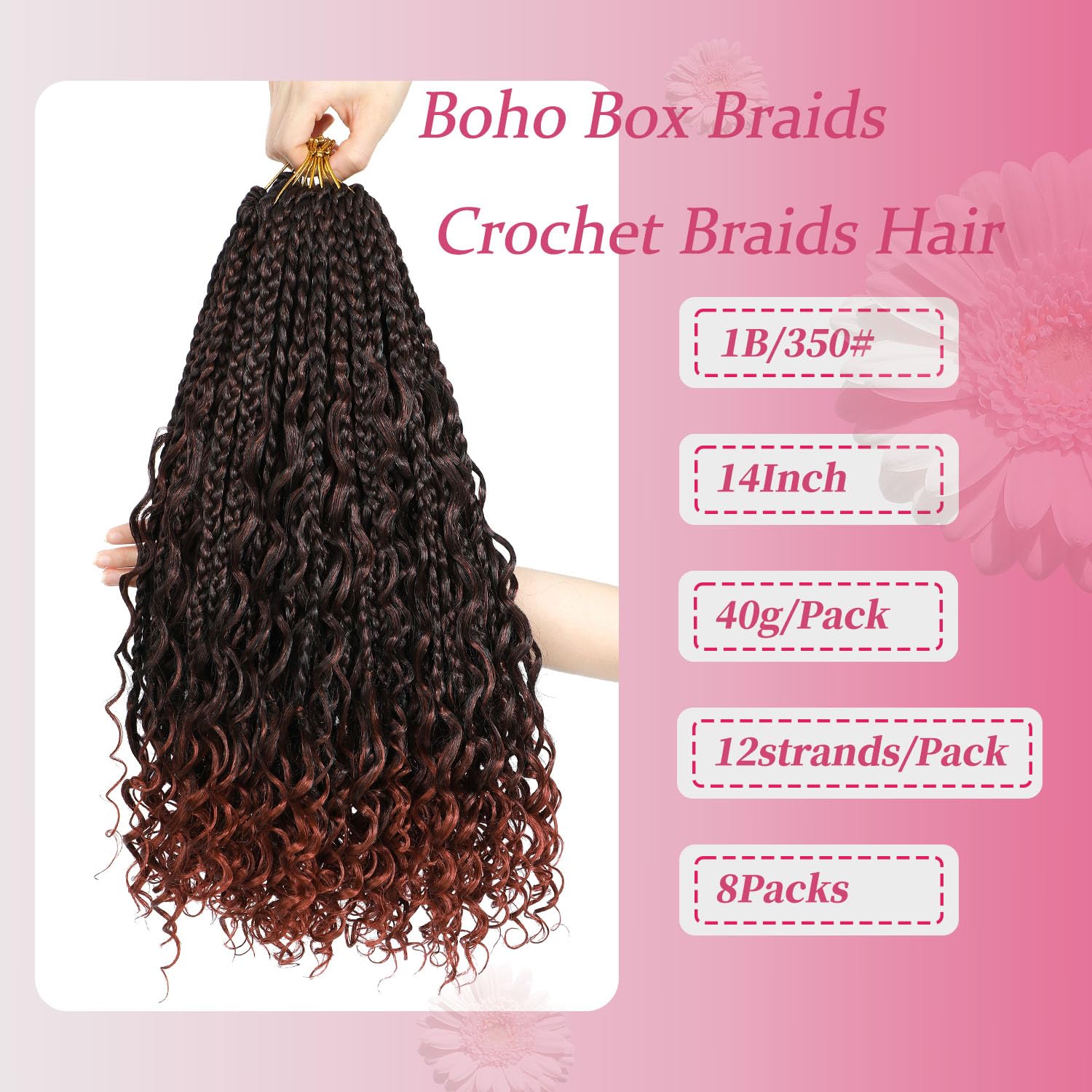 2.Packaging: Goddess Box Braids 12 Strands/Pack, 6Packs/Lot. Length: 14 inches, 18 inches, 24 inches.Bohemian style crochet box braids come in different colors to choose from, with relatively low maintenance costs, making them an excellent choice for your daily styling
