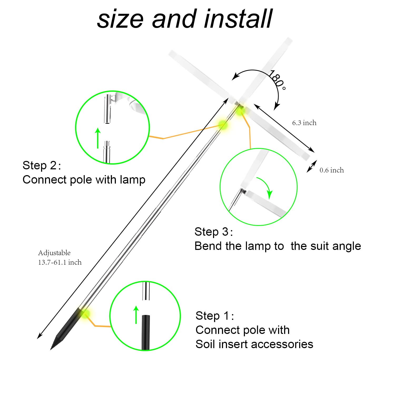 Height Adjustable Up to 61.1" - The height range is 13.7"-61.1", The pole does telescope up and down as well which is handy it can grow the plant to stay at a reasonable height,also it will cover a pretty larger space to shine light on more plants in close proximity when it is fully extended.