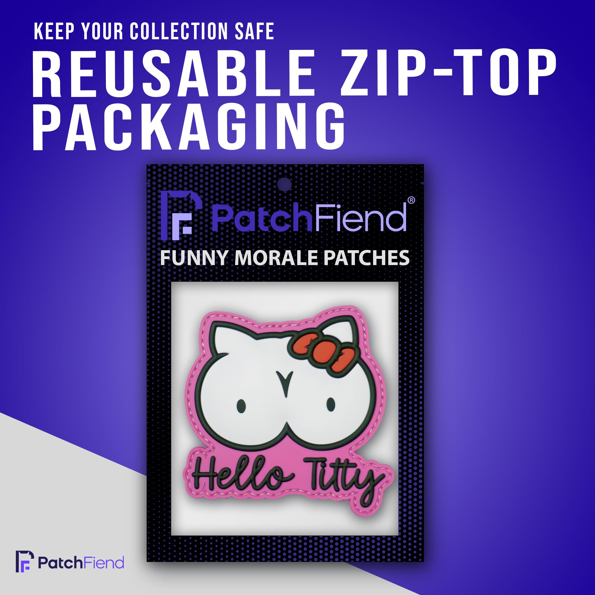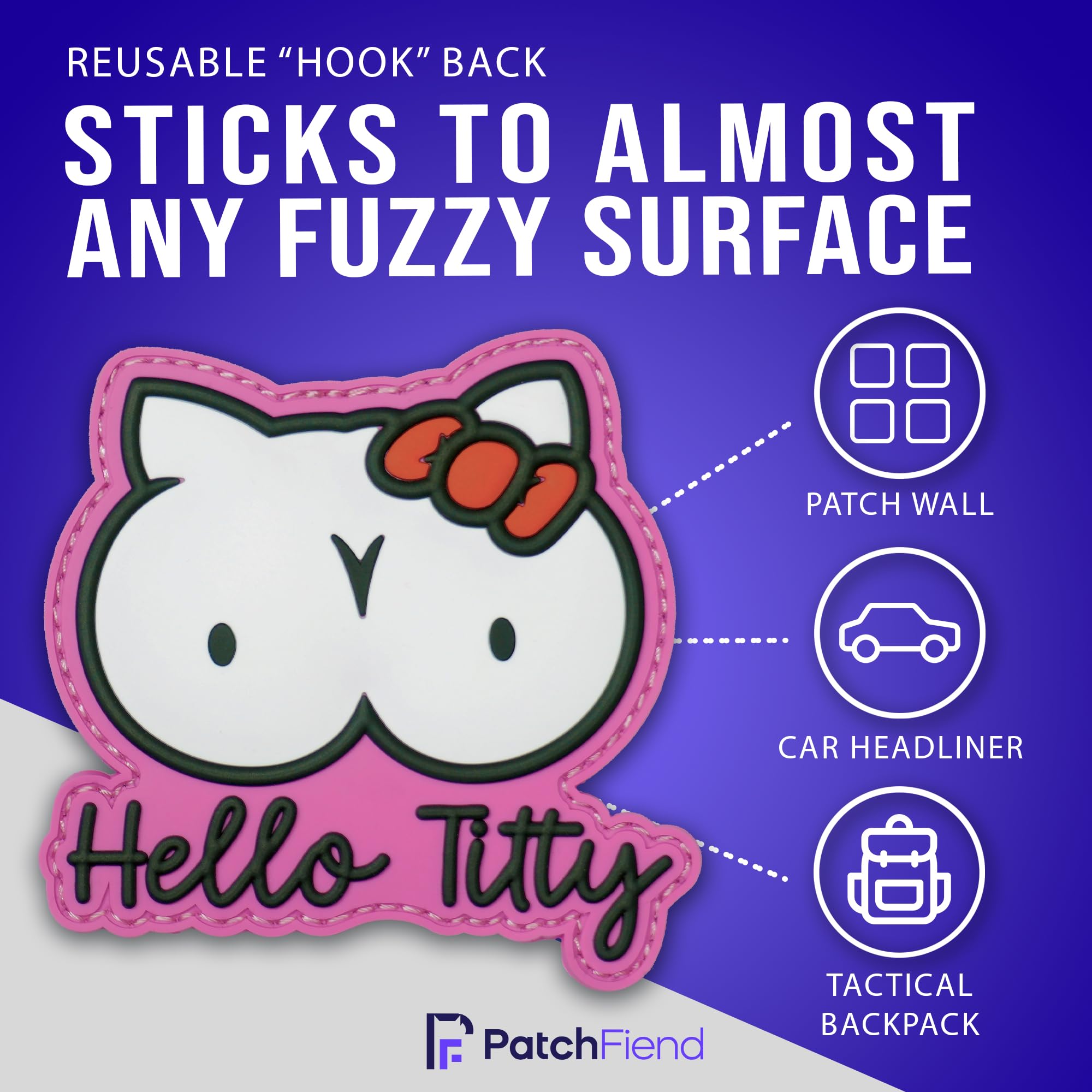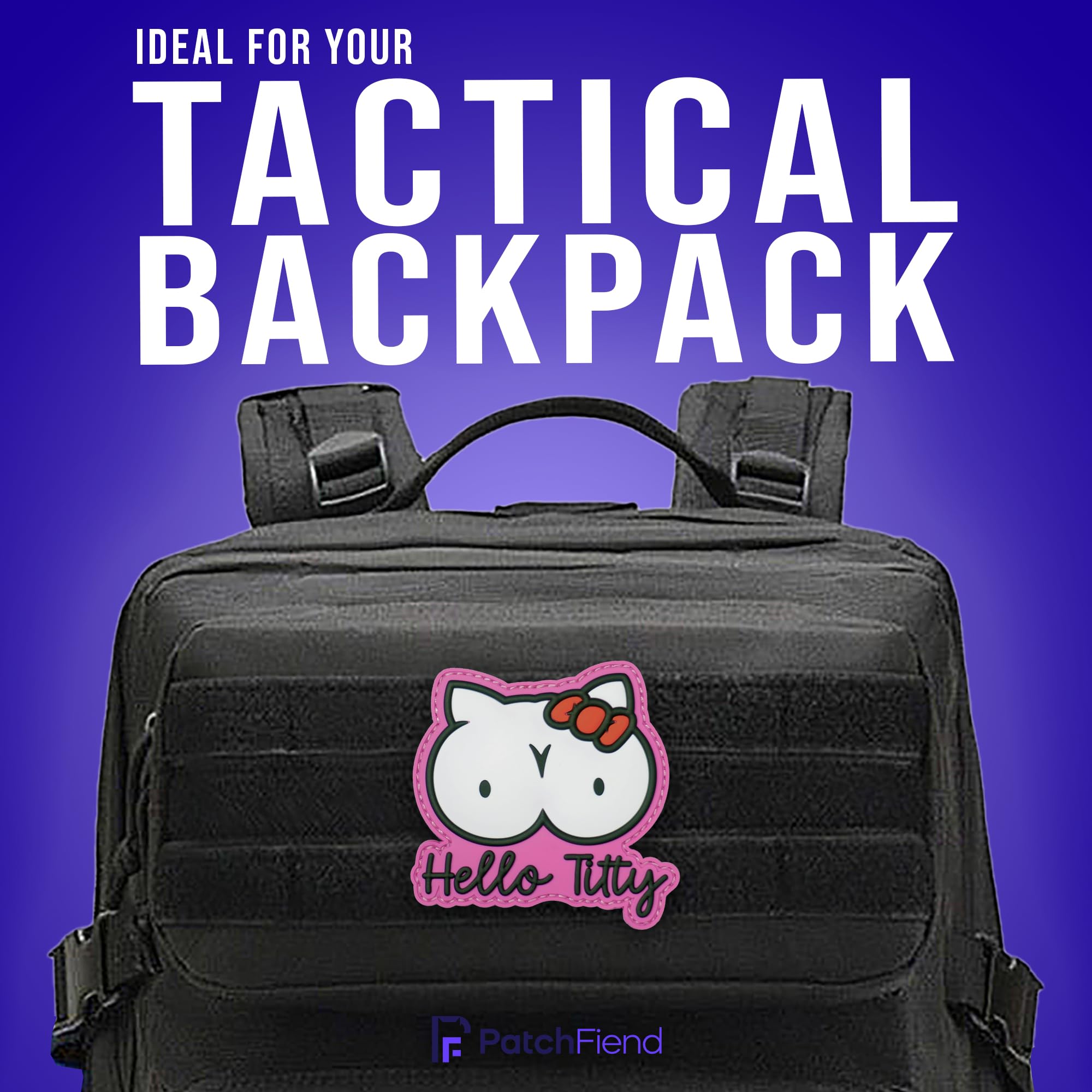 Uniquely Amusing Design: Stand out with this hilarious "Hello Titty" PVC morale patch, a witty parody that reimagines a classic character with a playful, adult twist. Perfect for those who appreciate a good laugh and want to add a touch of edgy humor to their gear.