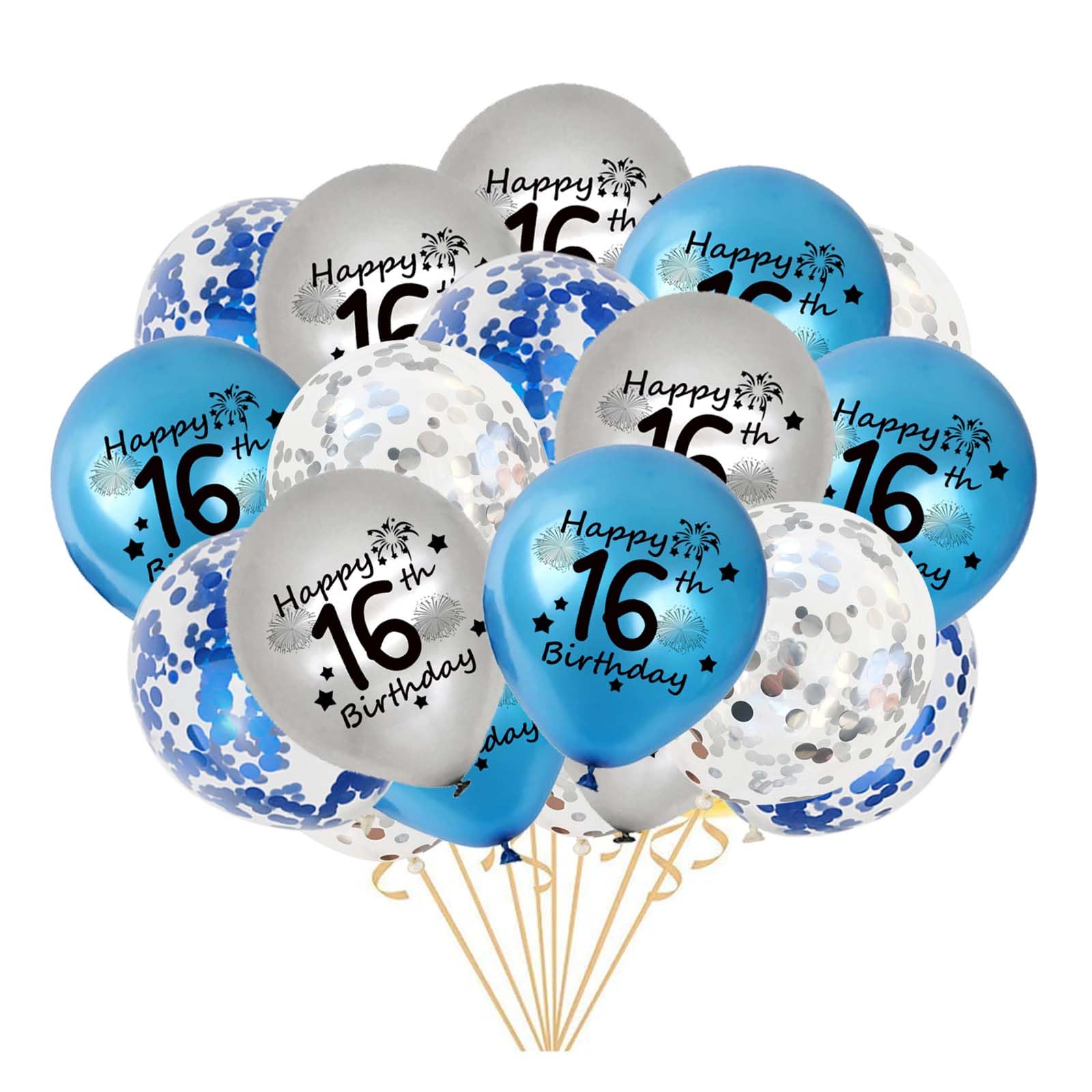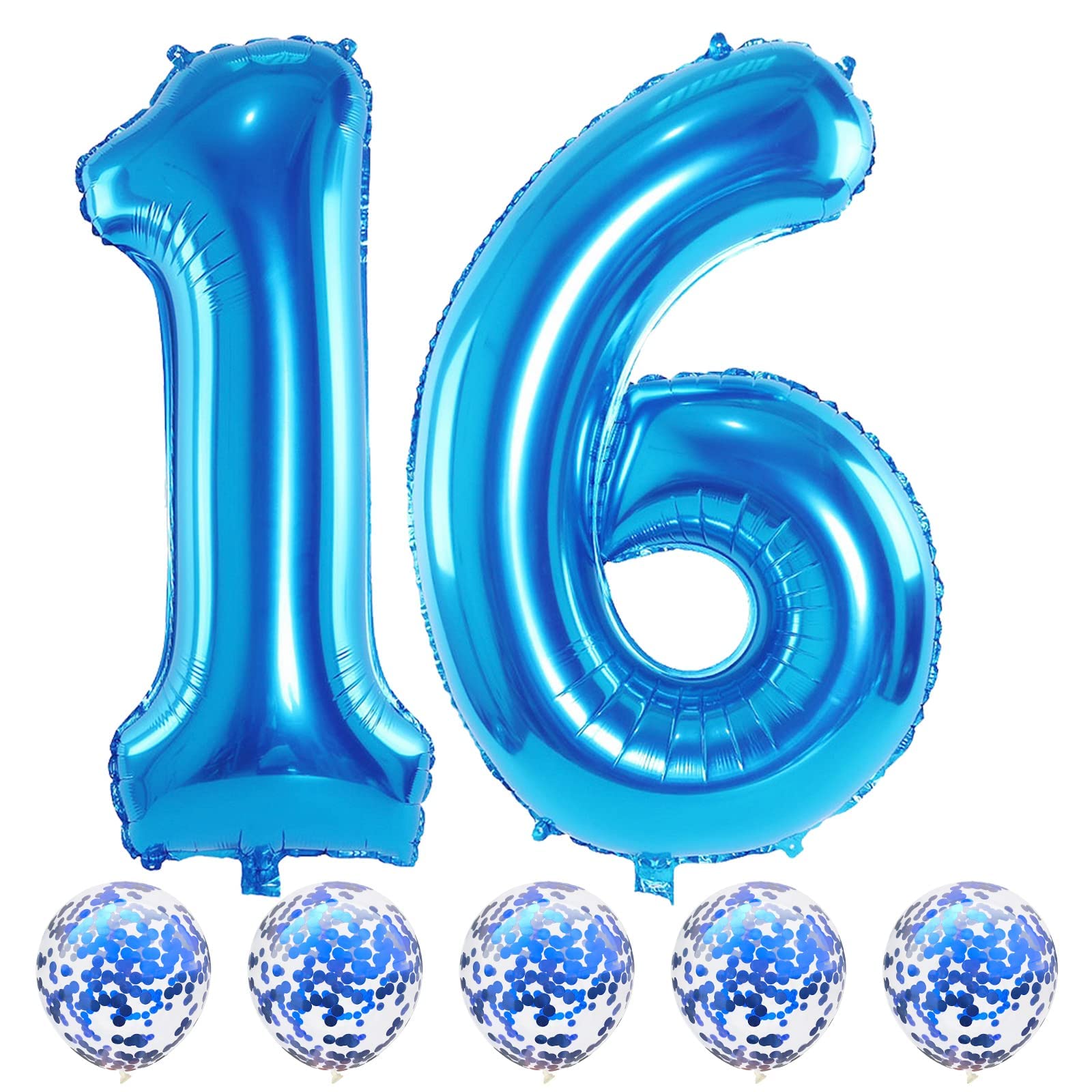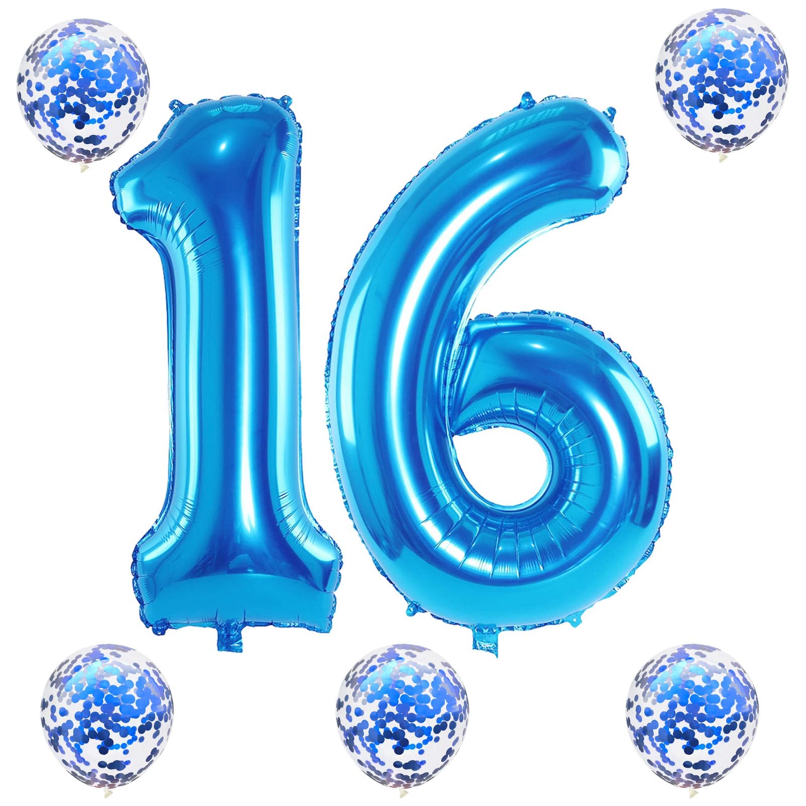 💕 Perfect Party Decorations 💕 - The shiny blue number 16 mylar foil Balloons with pack of 5 blue confetti latex balloons is ideal for boys girls 16th birthday party balloons, as a backdrop or photo props, pool party, men and women 16th anniversary event wedding party, baby shower party, engagement ceremony, graduation party decorations supplies.