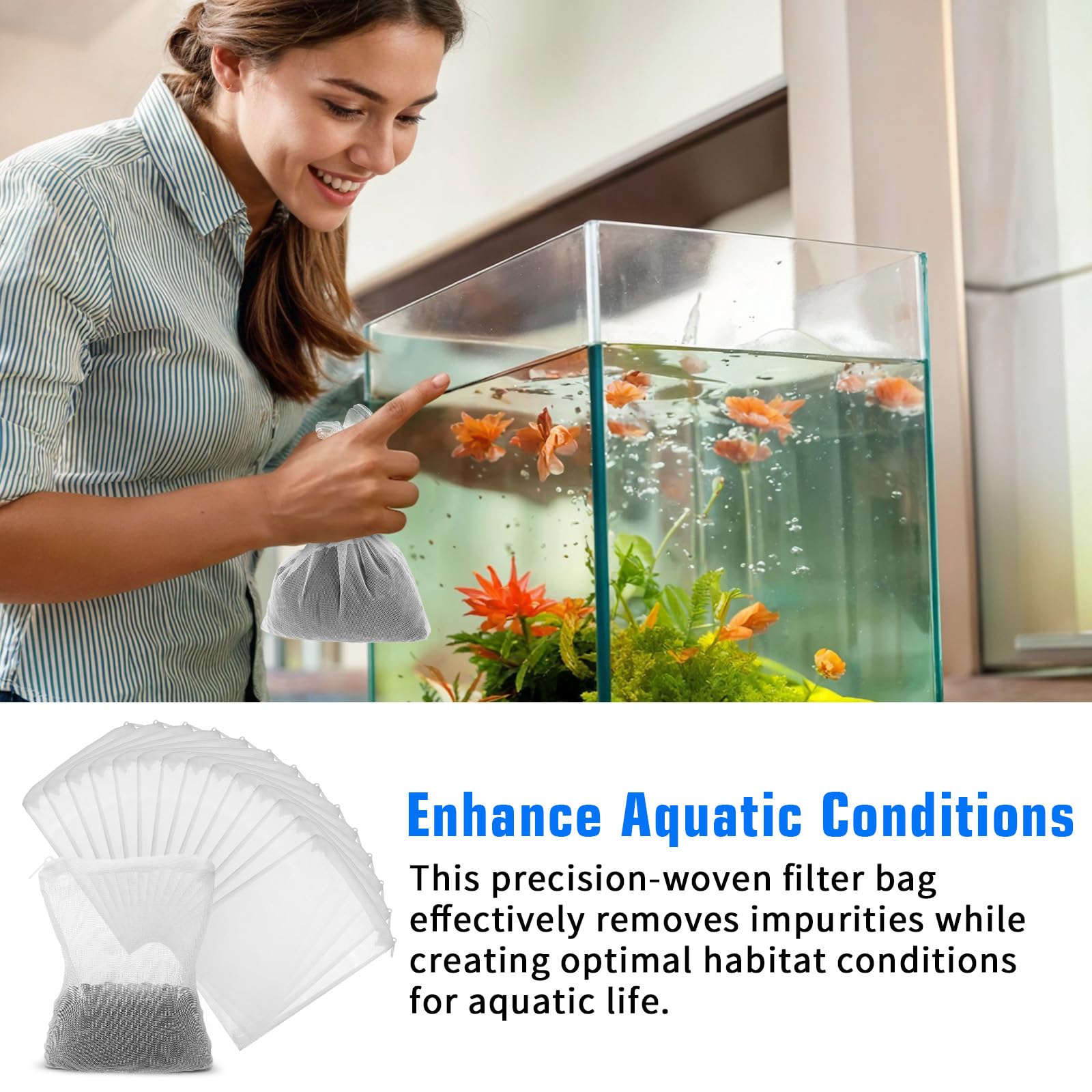 【Fine Mesh Design】: These fine mesh bags have a mesh diameter of 100 microns, which is perfect for holding fine filter media such as resin and other small particles, preventing them from escaping into the aquarium.