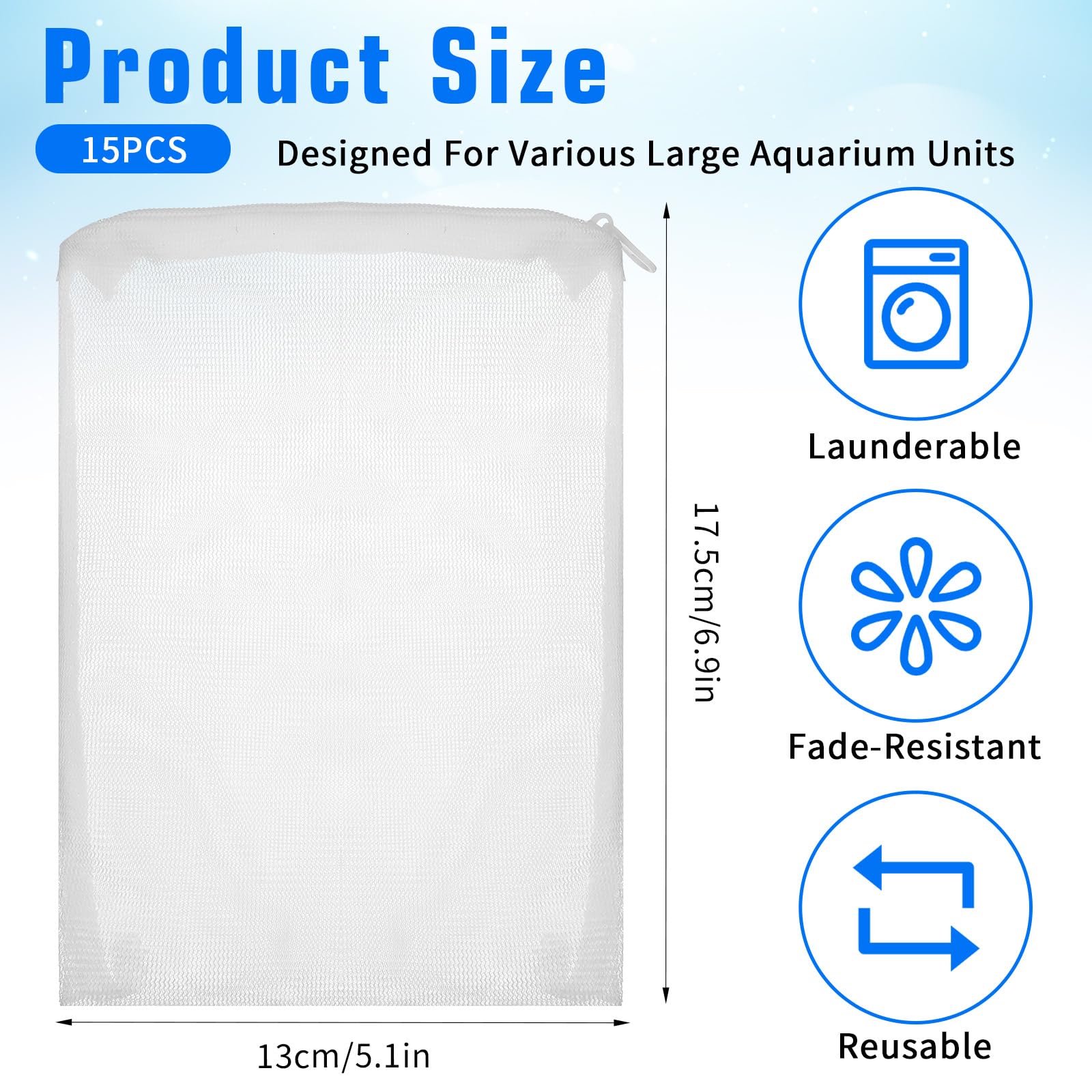[Versatile Compatibility]: These filter bags are suitable for a wide range of filtration systems, including canister filters, power filters, sumps, and pond filtration systems. They are ideal for both freshwater and saltwater tanks, providing a versatile solution for your aquarium needs. Product name: 15pcs aquarium filter media bags Color: white Material: 100% nylon