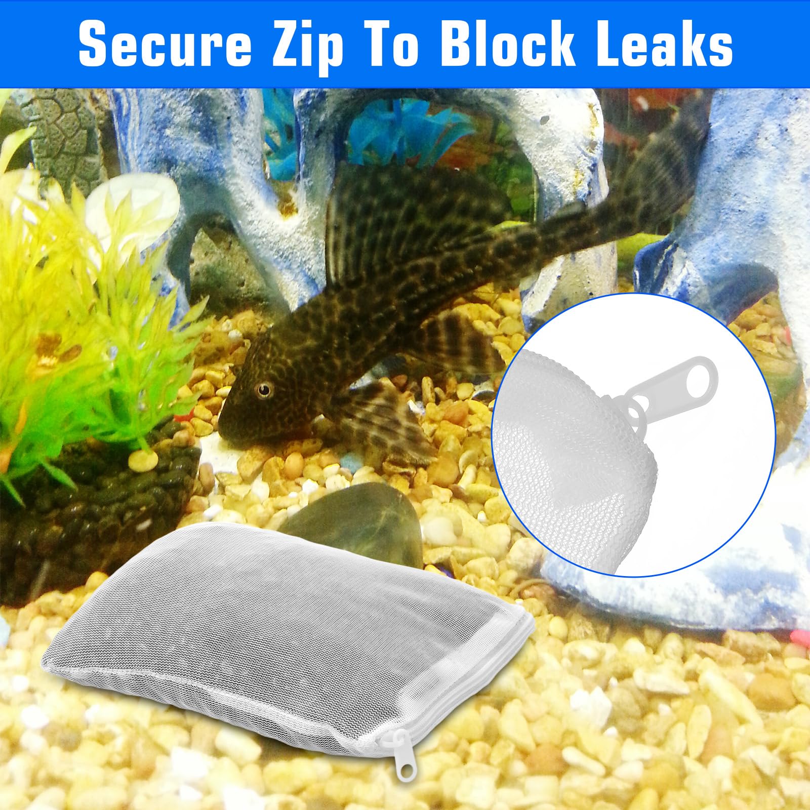【Secure Zipper Closure】: The plastic zipper design of the aquarium media bags does not rust, ensuring water quality, while ensuring that the filter media in the aquarium filter bags remain securely in the bag, preventing any spills or leaks that may affect the water quality of the aquarium.