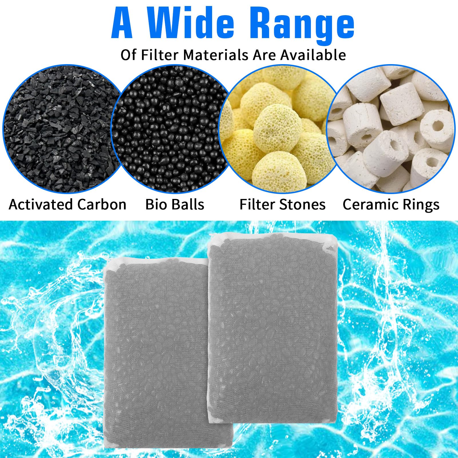 【Multi-Purpose Use】: These mesh filter bags are suitable for both freshwater and saltwater tanks. These aquarium media bags can be used with a variety of filtration systems, including bucket filters, power filters, and pond filtration systems. Hold the media together to keep the aquarium clean