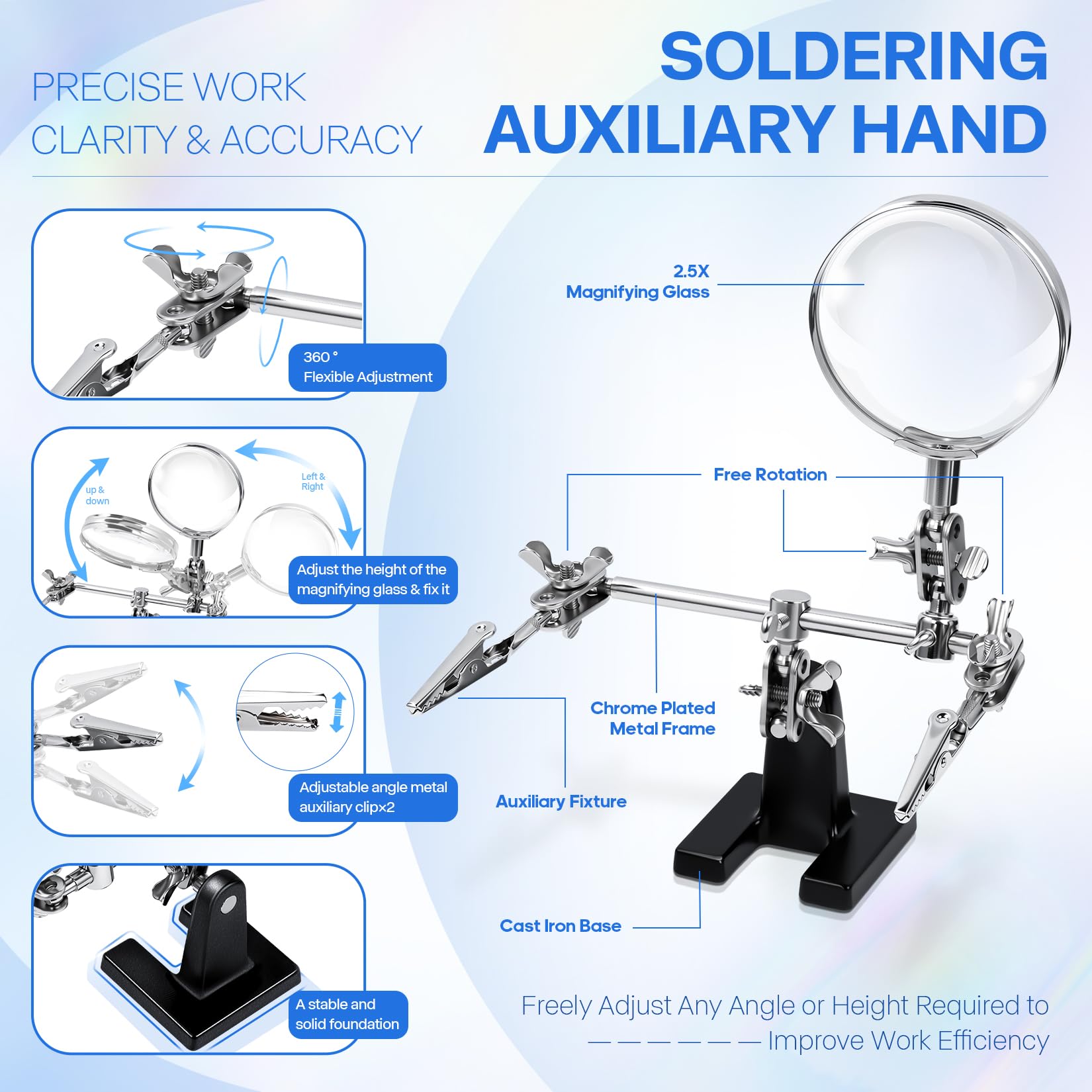 Sturdy & Stable Cast Iron Base – The soldering helping hand features a heavy-duty cast iron base that prevents rust and keeps the tool steady during precision work, ensuring no unwanted movement while soldering or crafting.