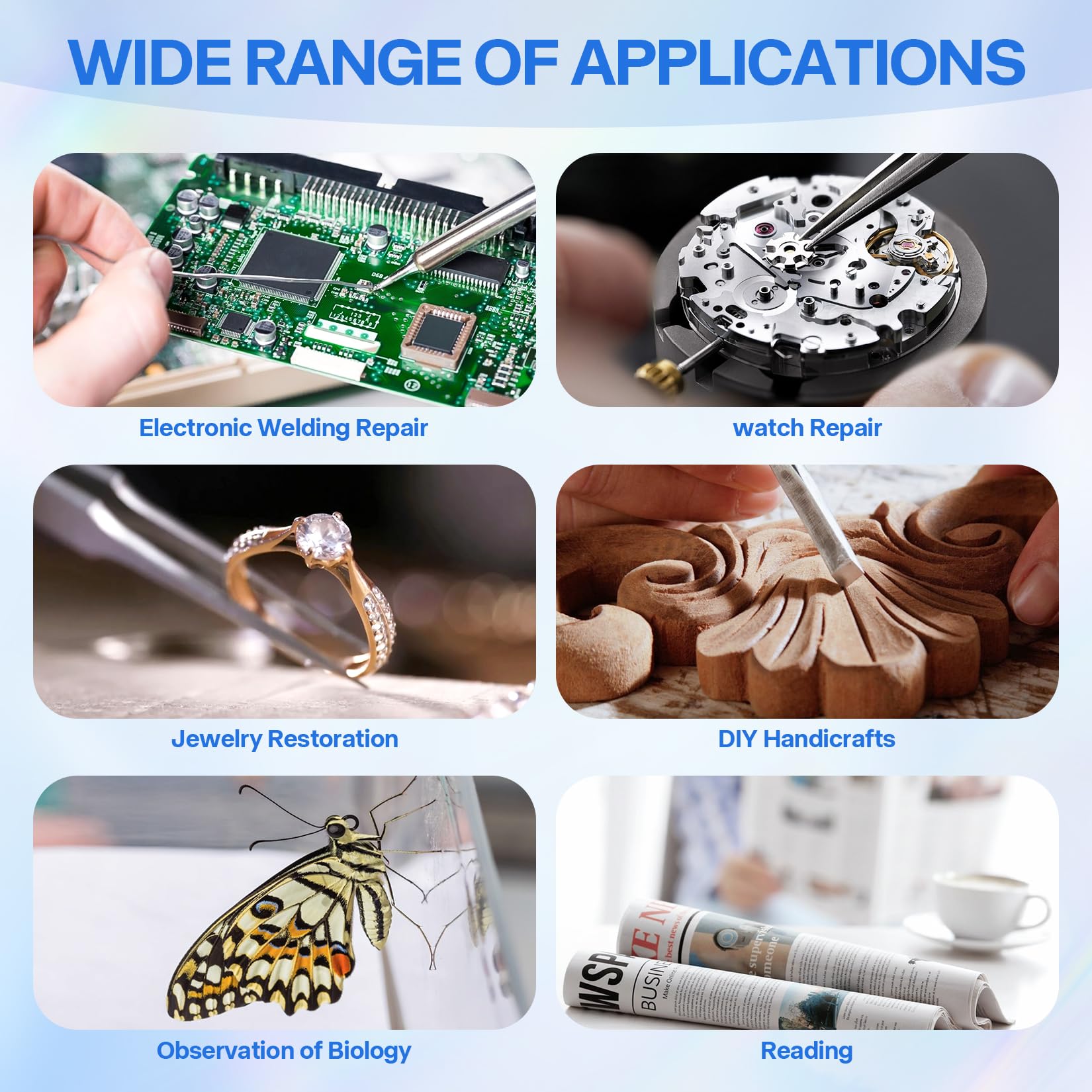 Versatile for Multiple Uses – Ideal for electronics repair, watchmaking, model building, DIY crafts, painting miniatures, splinter removal, and other precision tasks requiring steady magnification.