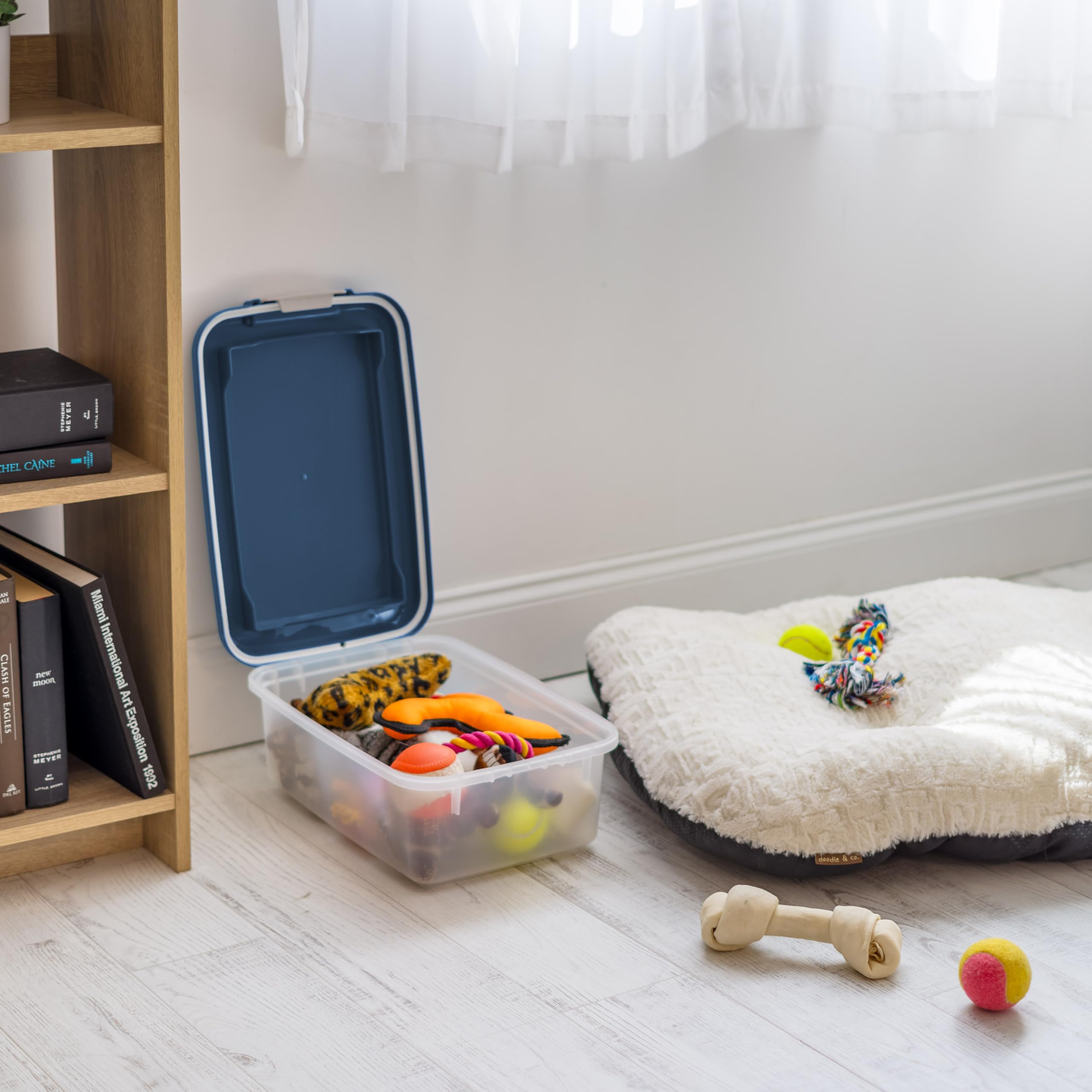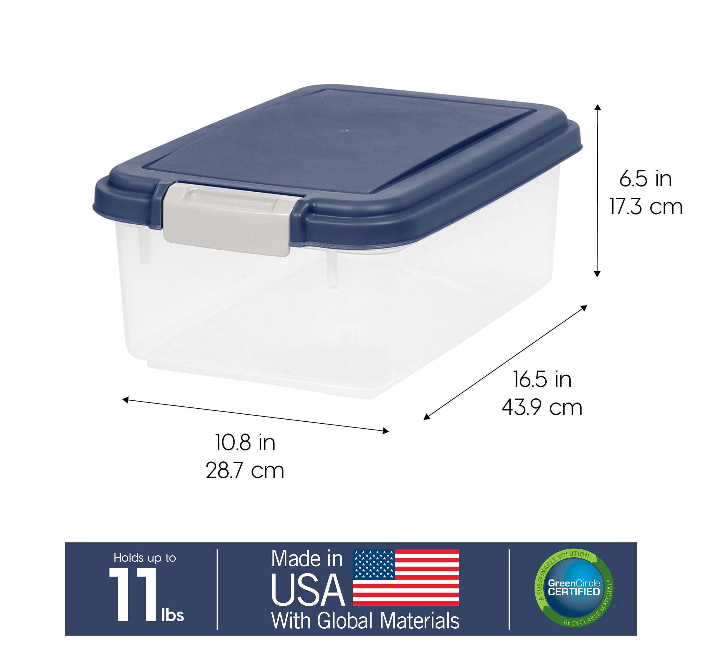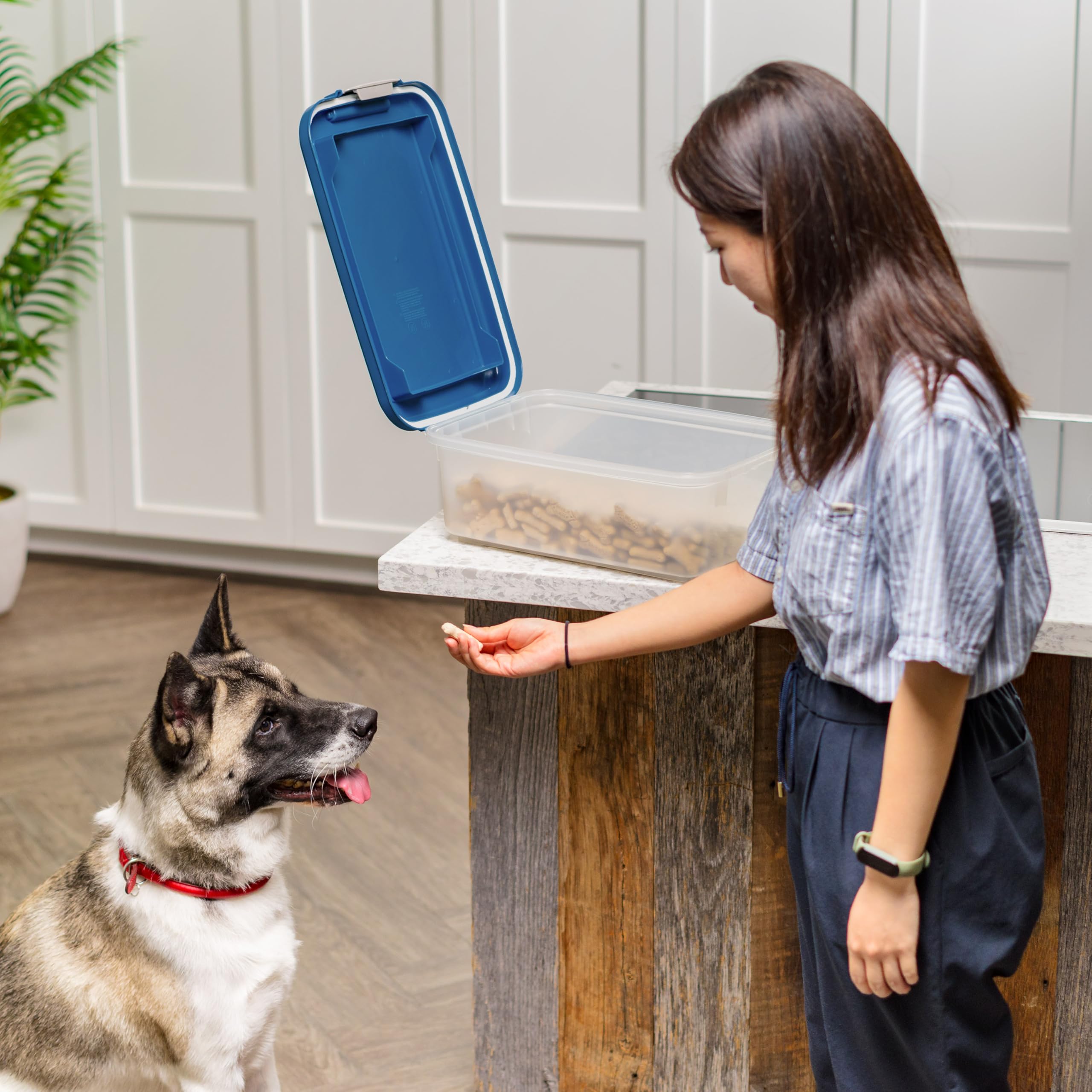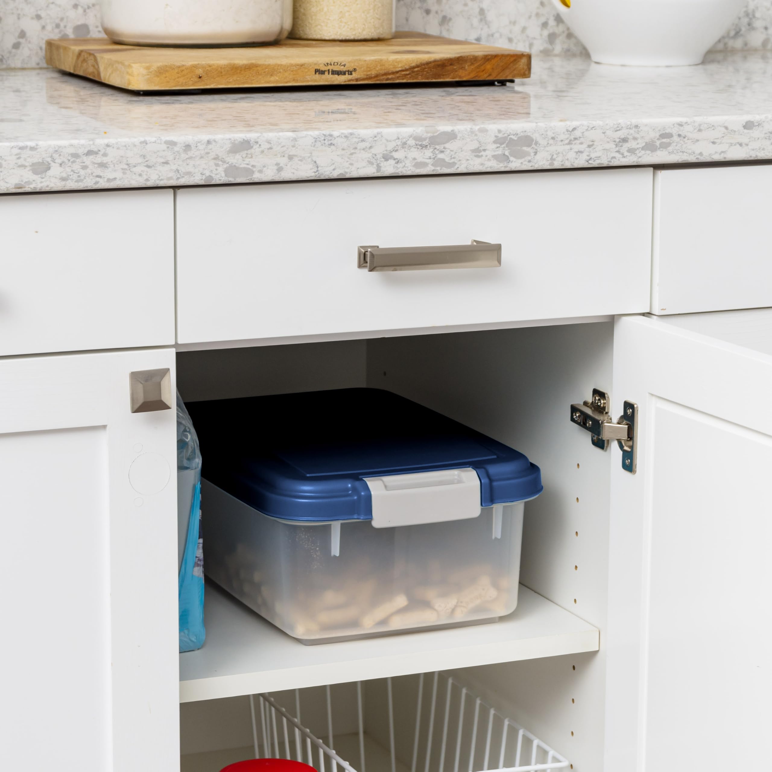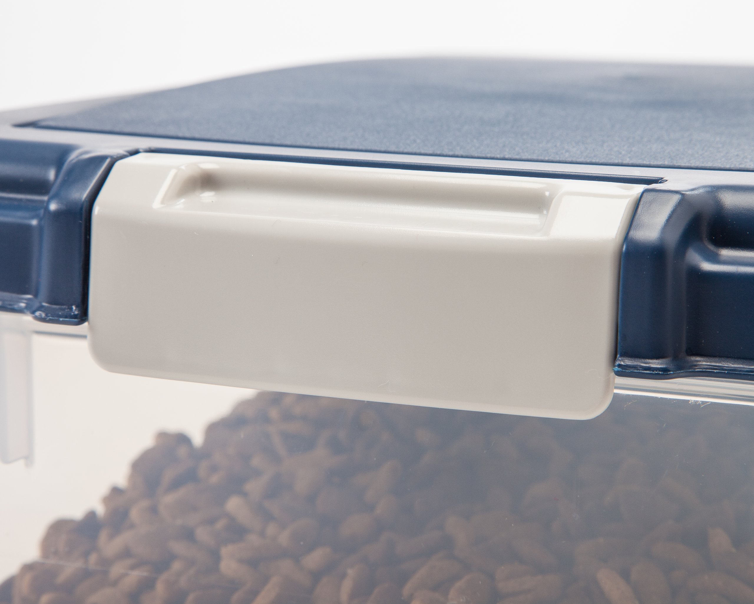 Meet the airtight container designed with your pet in mind. This plastic airtight container is perfect for storing up to 11lbs of dog food, cat food, or any other pet food you wish to store. The sealed storage container features a foam seal and snap lock latches to keep contents fresh. Designed as pet food bins, these BPA free airtight storage bins offer many other uses as well, such as leash and toy storage, pellet storage, grain storage, birdseed storage, cat litter storage, or even as a Charcoal container. This IRIS airtight pet food container is translucent, versatile, functional, and can be used in any area of the house. Made in the USA.