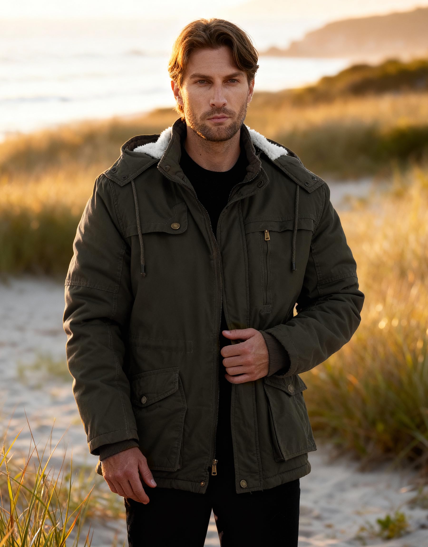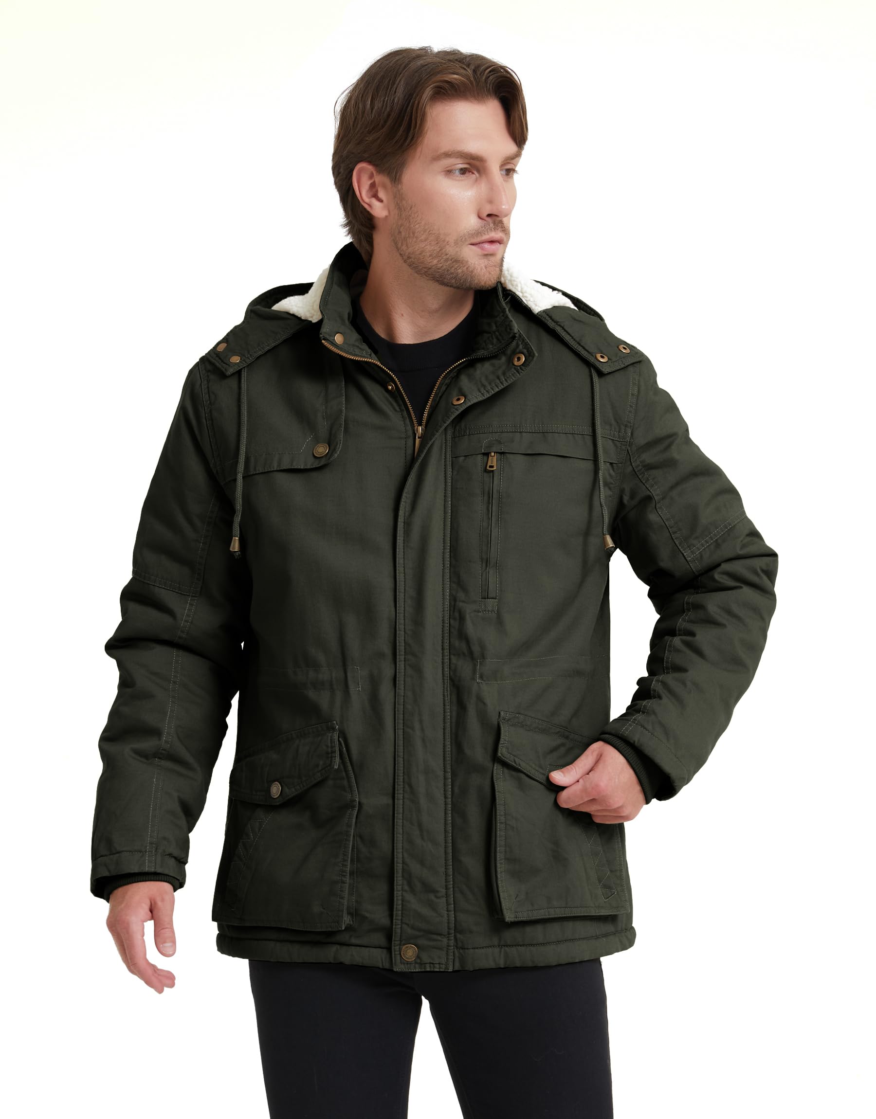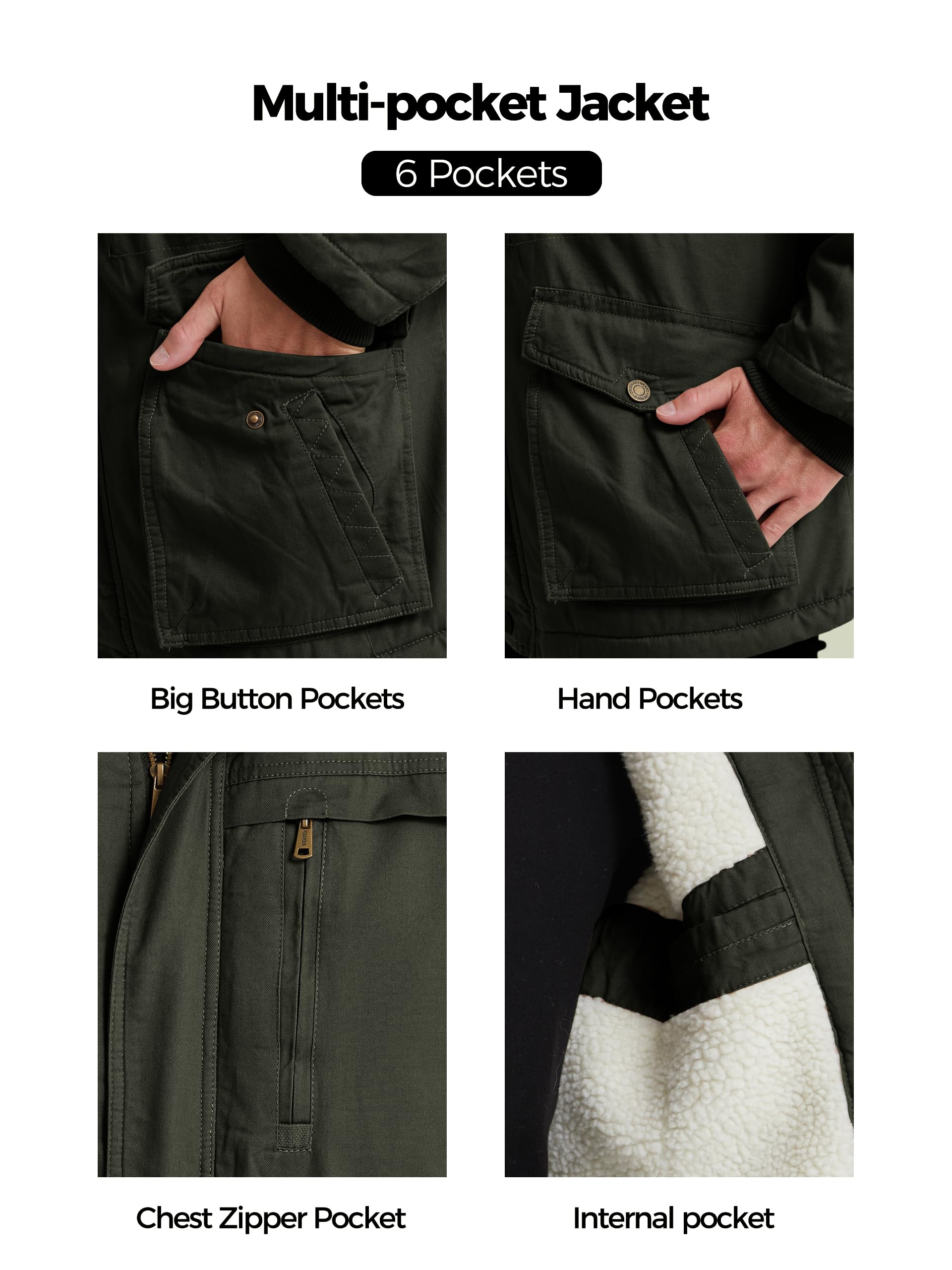 Keep Warm & Cozy - This military sherpa lined coat for men is made with quilted sleeves for an unbeatable combination of warmth and coziness that offers the perfect solution for crisp days and chilly nights.