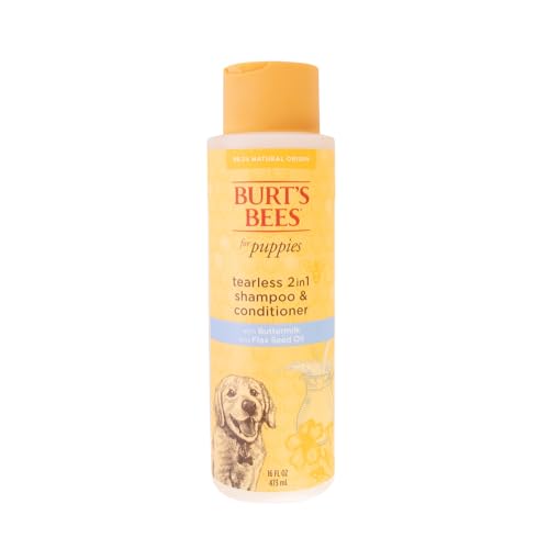 Burt’s Bees for Pets Tear Free Puppy Shampoo & Conditioner is made for gentle cleaning and light conditioning during regular puppy baths. This 2 in 1 puppy shampoo and conditioner helps simplify bath time while caring for puppies’ sensitive skin and eyes. Formulated with naturally derived ingredients like buttermilk, this puppy shampoo and conditioner helps leave coats clean, soft, and easy to manage without harsh cleansers. The tear free, low-lather formula rinses easily, making bath time calmer for puppies and pet parents. Free from sulfates, parabens, phthalates, and artificial colorants, this dog shampoo and conditioner for puppies is pH balanced specifically for dog skin. It’s a gentle option for routine grooming and early puppy care.