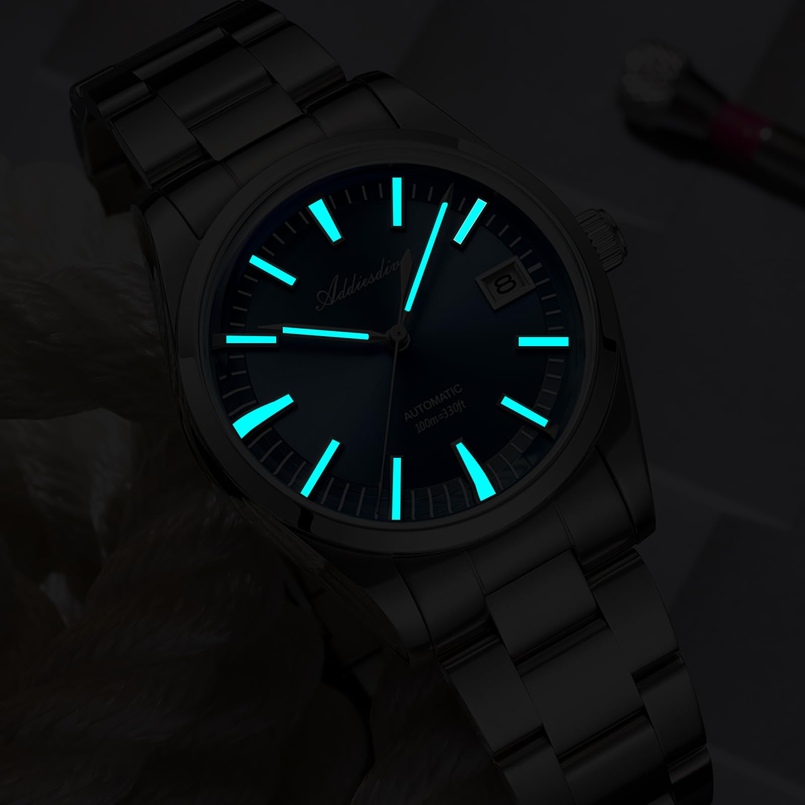 Craftsmanship: The 316L stainless steel case is brushed and polished for brilliance and durability. The watch is fitted with a 5.5 mm screw-down crown and a sturdy caseback to ensure water resistance,waterproof to 100 m