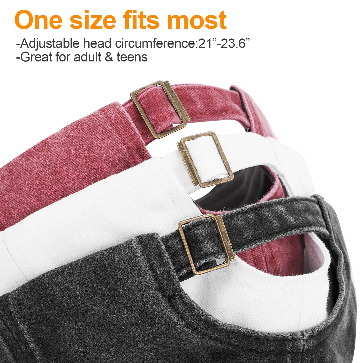 Adjustable sizel: One size fits most, adjustable metal closure provides a flexible fit.Rear opening design fits women's low ponytail comfortably. Also fits for men and teenagers, great idea for mother’s day/ father’s day/birthday/Christmas gift for your family and friends