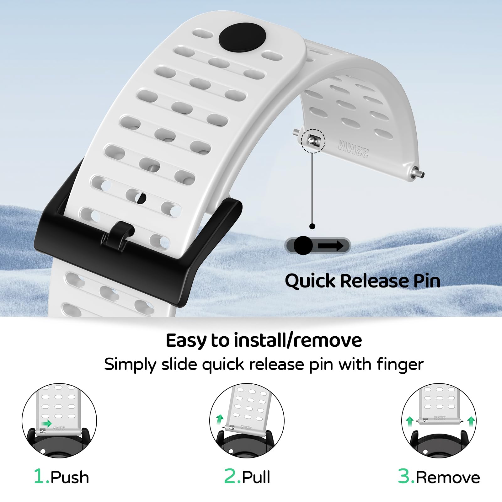 Quick release replacement band, easy to install and remove. No tools required.