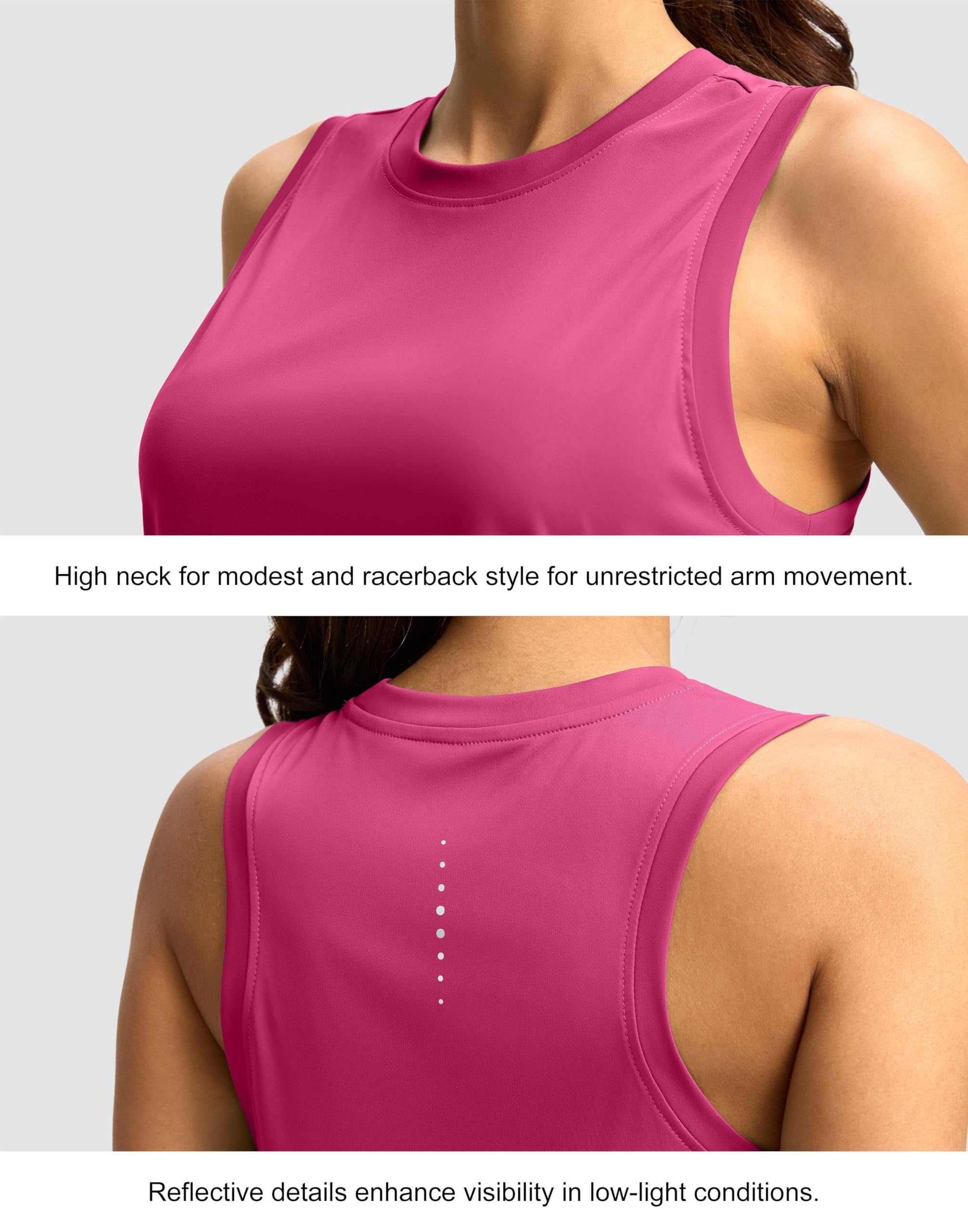 Unique Racerback Style: The racerback style allows for air circulation and unrestricted arm movement. You don't have to worry about your bra peeking out thanks to the wider racerback cut. Reflective details enhance visibility when you're running at night.