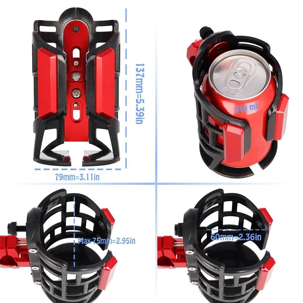 The clip of the motocycle cup holder can be rotated 360 degrees. So it can be fitted on handle bar, under seat, down tube, fork, front pipe or other angle.Suitable for all kinds of cups, bottles, travel mugs and glasses.