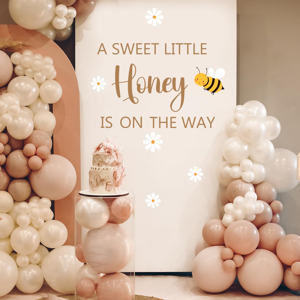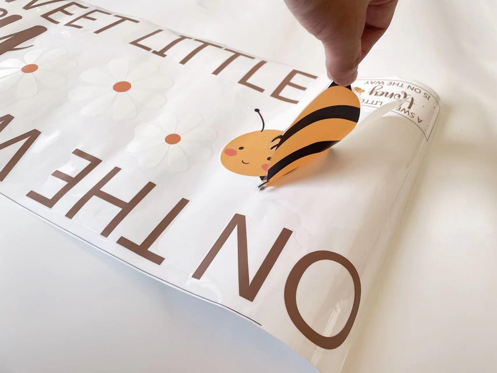 MEMORABLE MESSAGE - A Little Honey is on The Way Sign Wall Sticker is designed by a multiple fonts,little bee,daisy, simple and full of meaning, is a perfect decorative complement for baby shower party, expressing the great joy of welcoming a new baby into the world and easily enhancing the joy of the party event