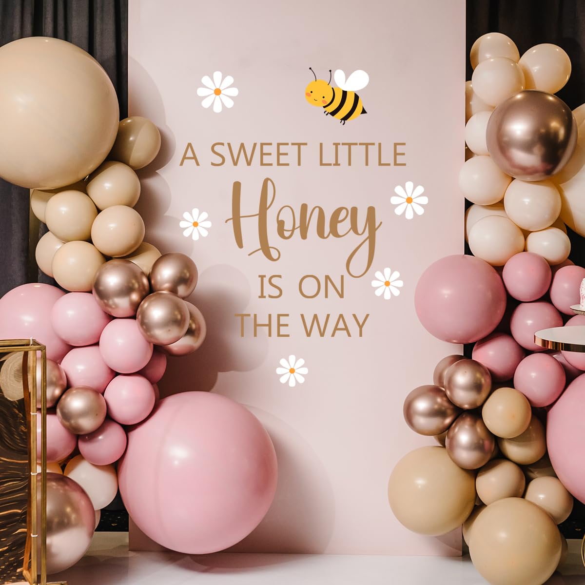 SWEET AND WHIMSICAL THEME - Transform your baby shower into a delightful celebration with this charming bee-themed balloon arch background wall sticker, featuring cheerful yellow lettering that reads "A Sweet Little Honey is on The Way" alongside an adorable bee motif, setting a whimsical tone for the occasion