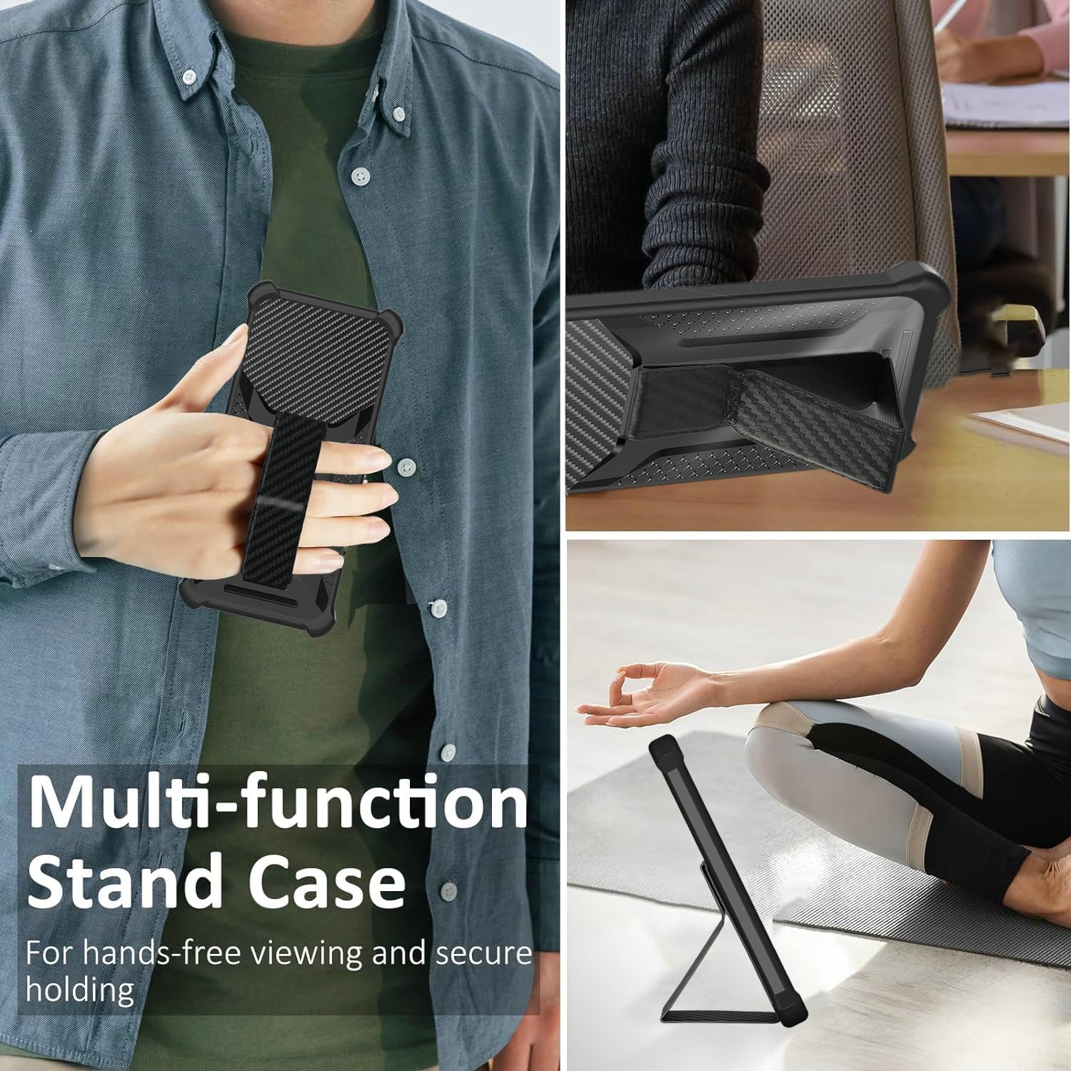 Case Compatible for Samsung Galaxy A35 Phone Case Cover [with Tempered Glass Screen Protector] Hybrid Case [Folding Support Magnetic] [Frosted anti-fingerprint] Black