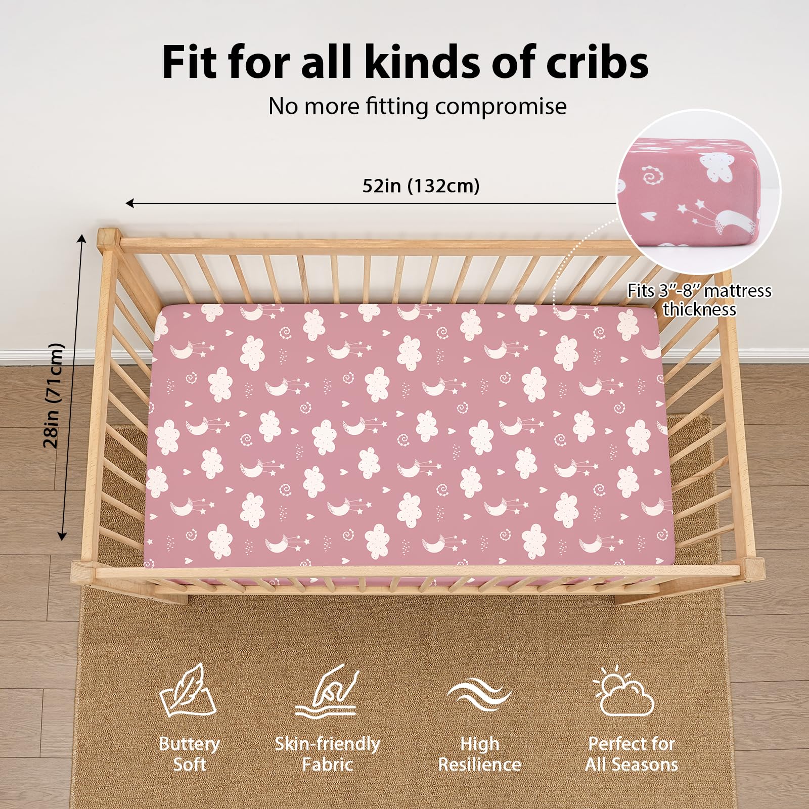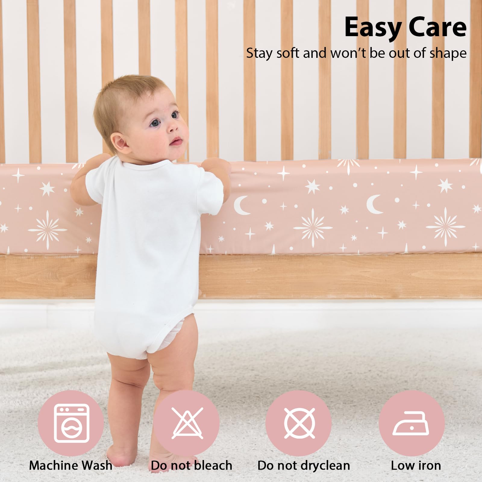 Easy Care & Sustainable: Made from pre-shrunk fabric, our crib mattress sheets resist fading, pilling, and shrinking, even after hundreds of machine washes. With double-stitched edges and corners, our baby girl crib sheets are built to last, ensuring comfort for your baby.