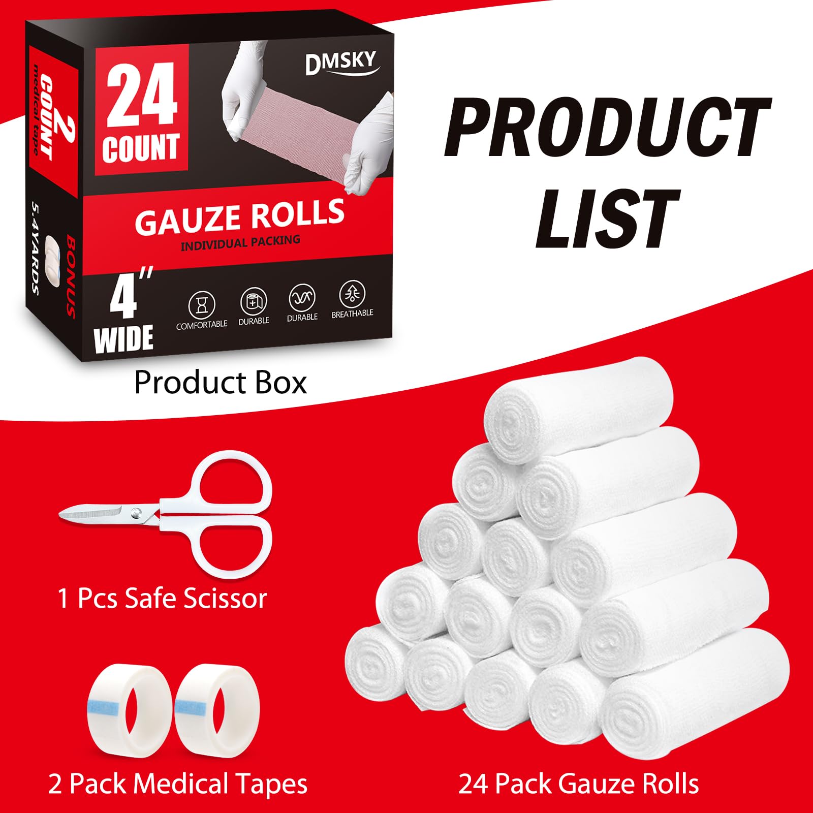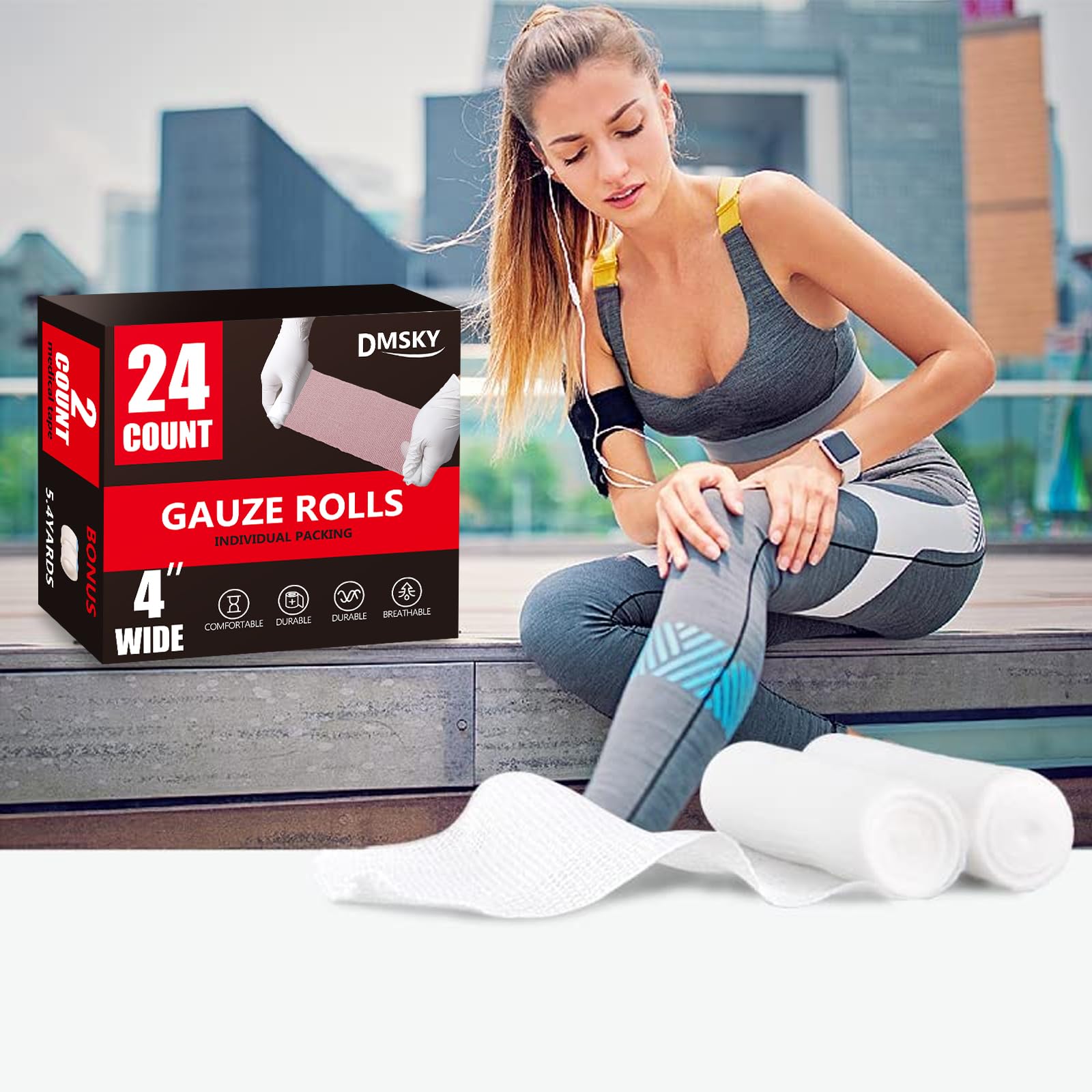 ✅【Individually Packed】24 bags of yarn rolls per package. Each roll is 4 inches x 4.1 yards, and you can cut it according to your needs. This is a good supplement to your first aid kit for hospitals, schools and sports. Dmsky non-sterile gauze bandage rolls – the #1 choice for your first aid kit!