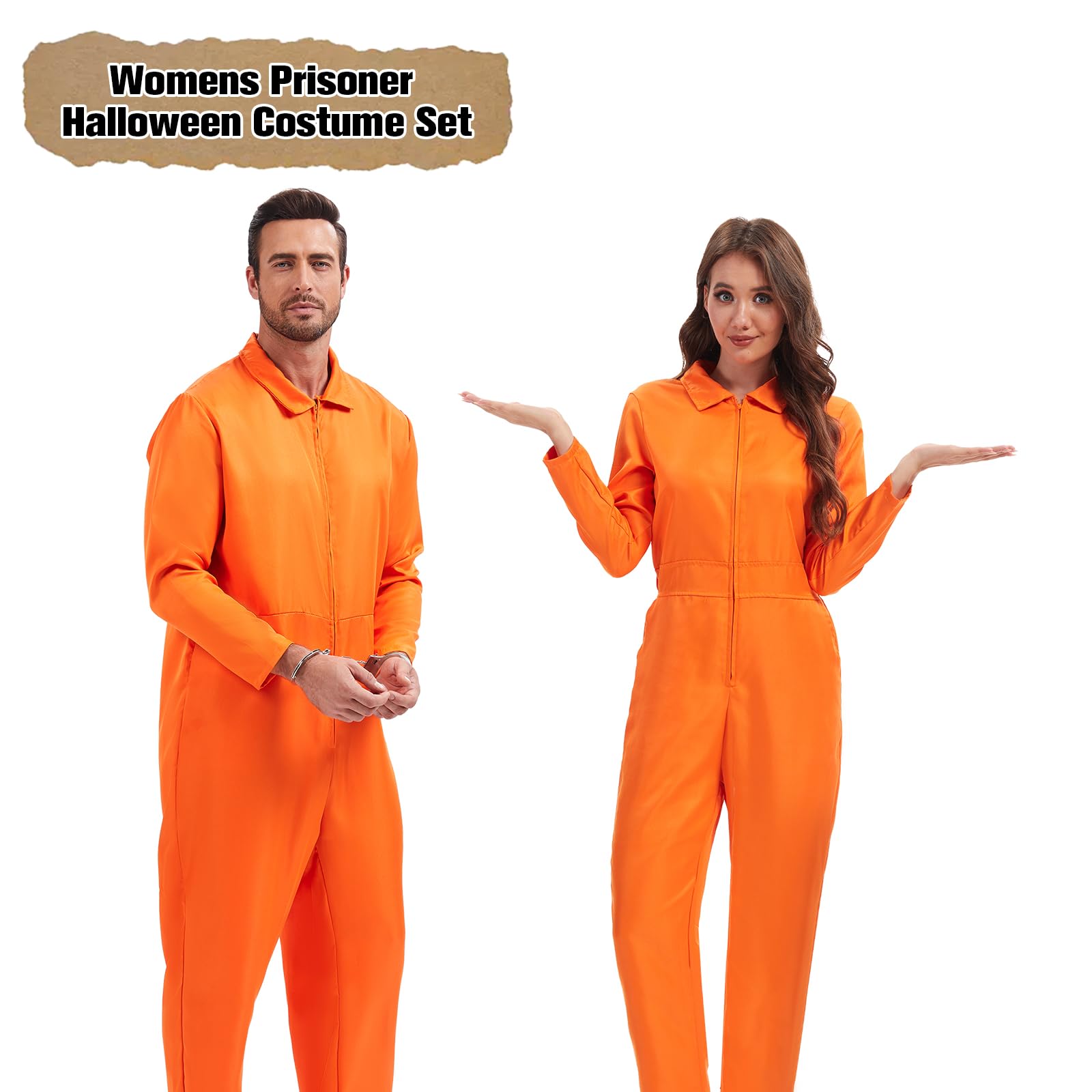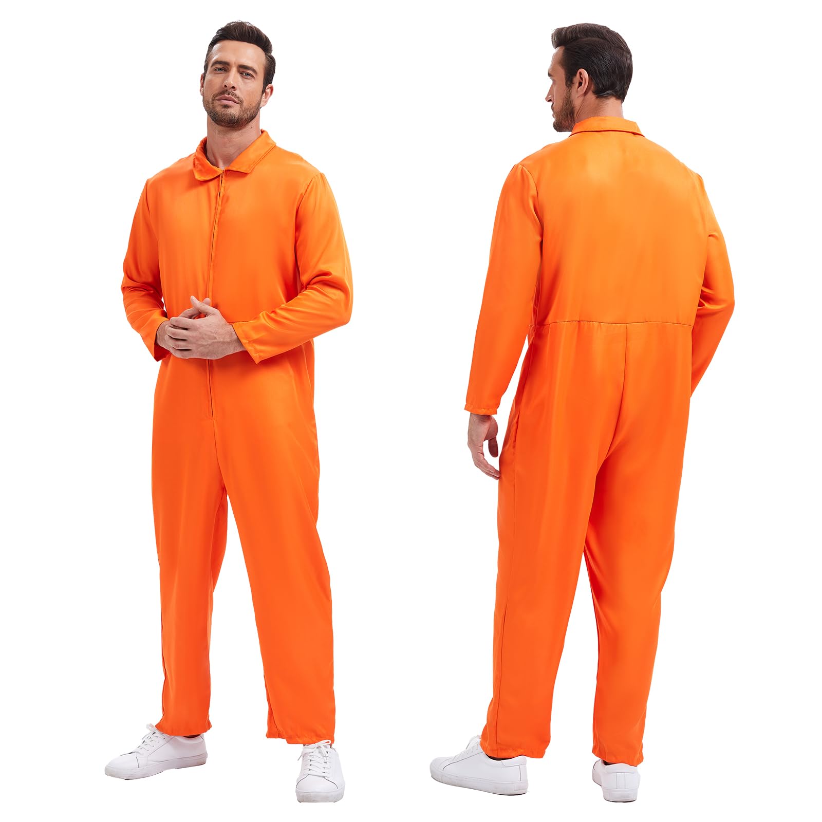 High Quality Costume: This orange prisoner jumpsuit is made from high-quality polyester that's extremely durable, and the fabric is soft and breathable, allowing you to move freely without feeling restricted.