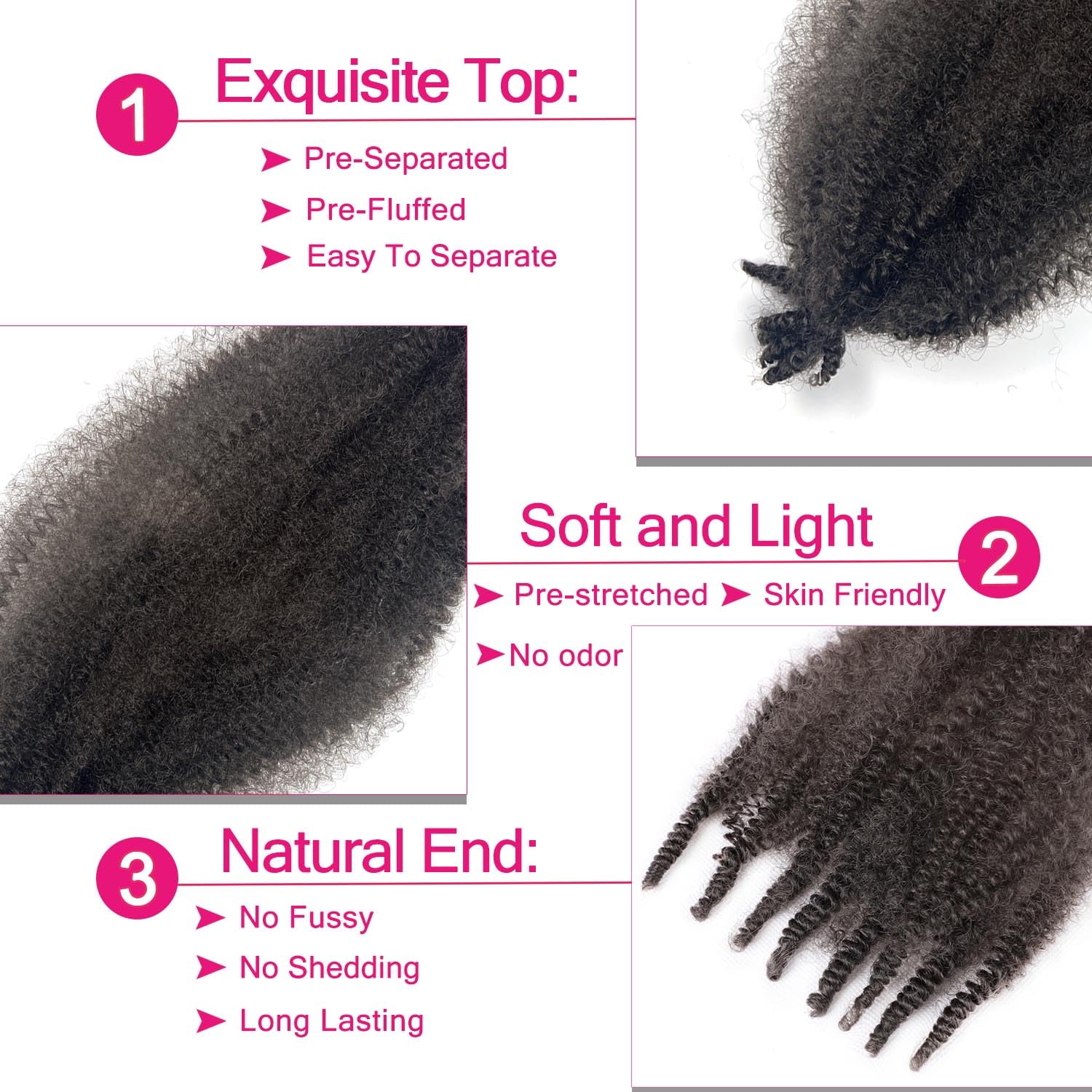 Advantage: springy afro twist hair Is Soft On Skin & Ultra Lightweight, No Smell, Easy To Separate, No Fussy Or Shedding, Pre-Separated & Pre-Fluffed For Easy Installation
