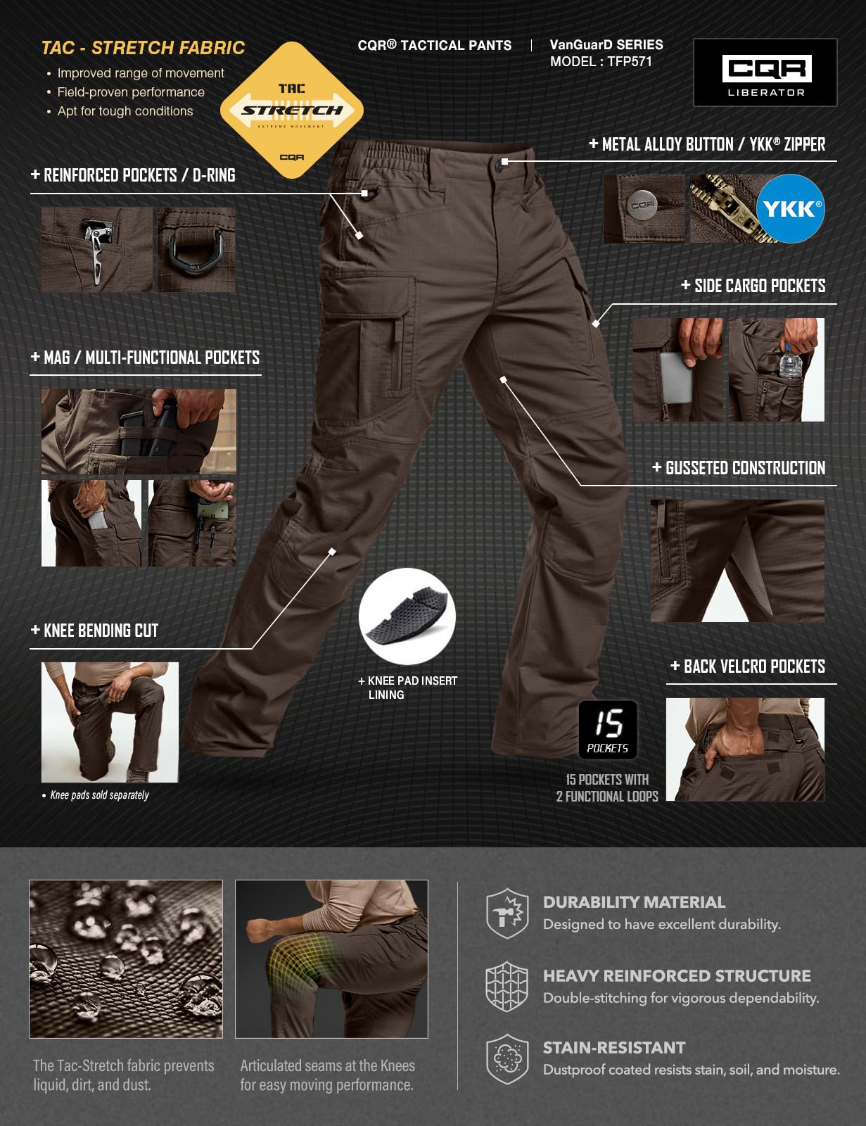 [Tac-Stretch Fabric] Improved range of movement and apt for tough conditions.