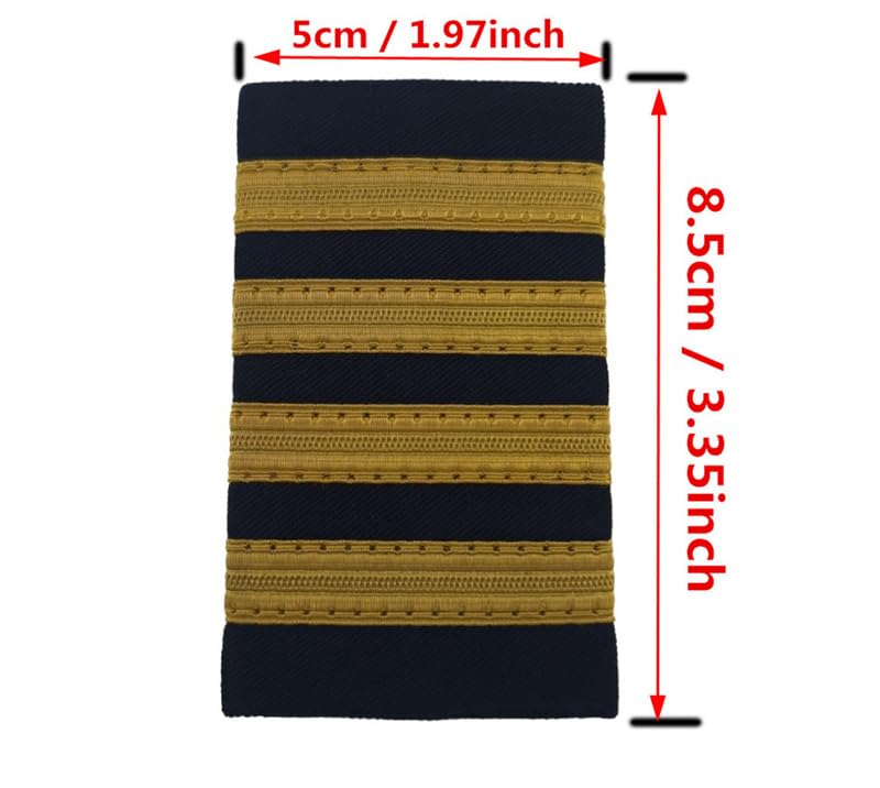 Description Civil aviation is a respectable industry which is Convenient for our lives ,we often see different Stripes on the collars of pilots at the airport,The first bar: It represents Profession,The second bar: represents Knowledge,The third bar is Flying skill,The fourth bar: Responsibility,different Stripes means different meaning ,The design of this epaulette is inspired by the Pilot uniform of Civil Aviation ,the size is about 8.5cmx5cm (3.34in.x 1.97in) ,the material is Polyester cloth and metal wire, Available in black fabric, with 1 to 4 stripes,Stripes are reinforcement lined for a professional look,We hope that our products can bring more fun to your life