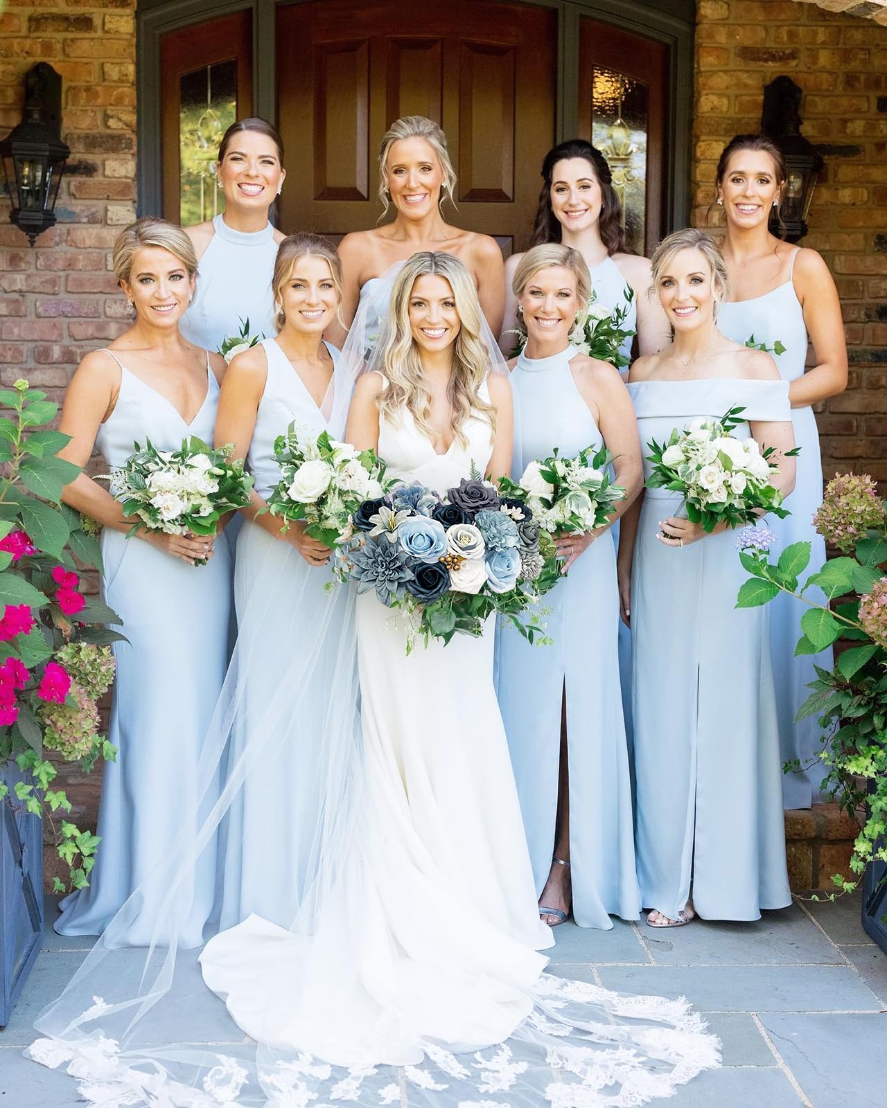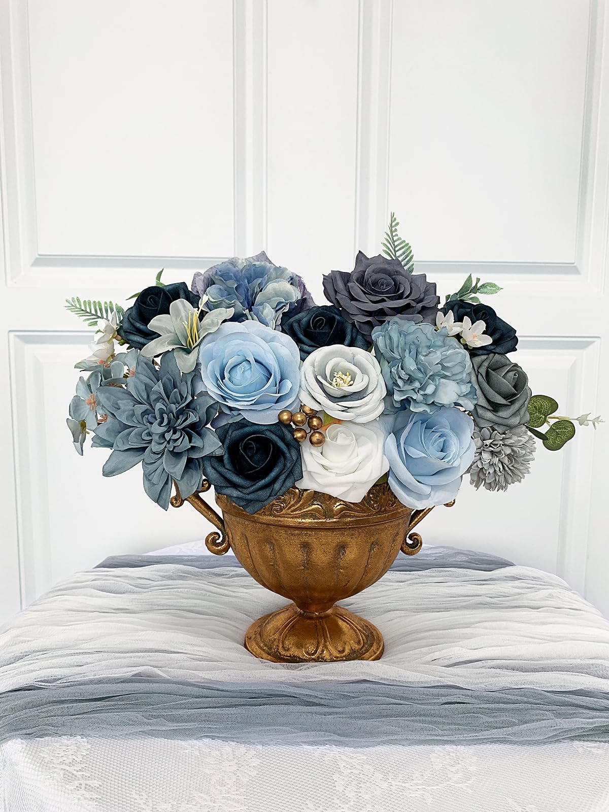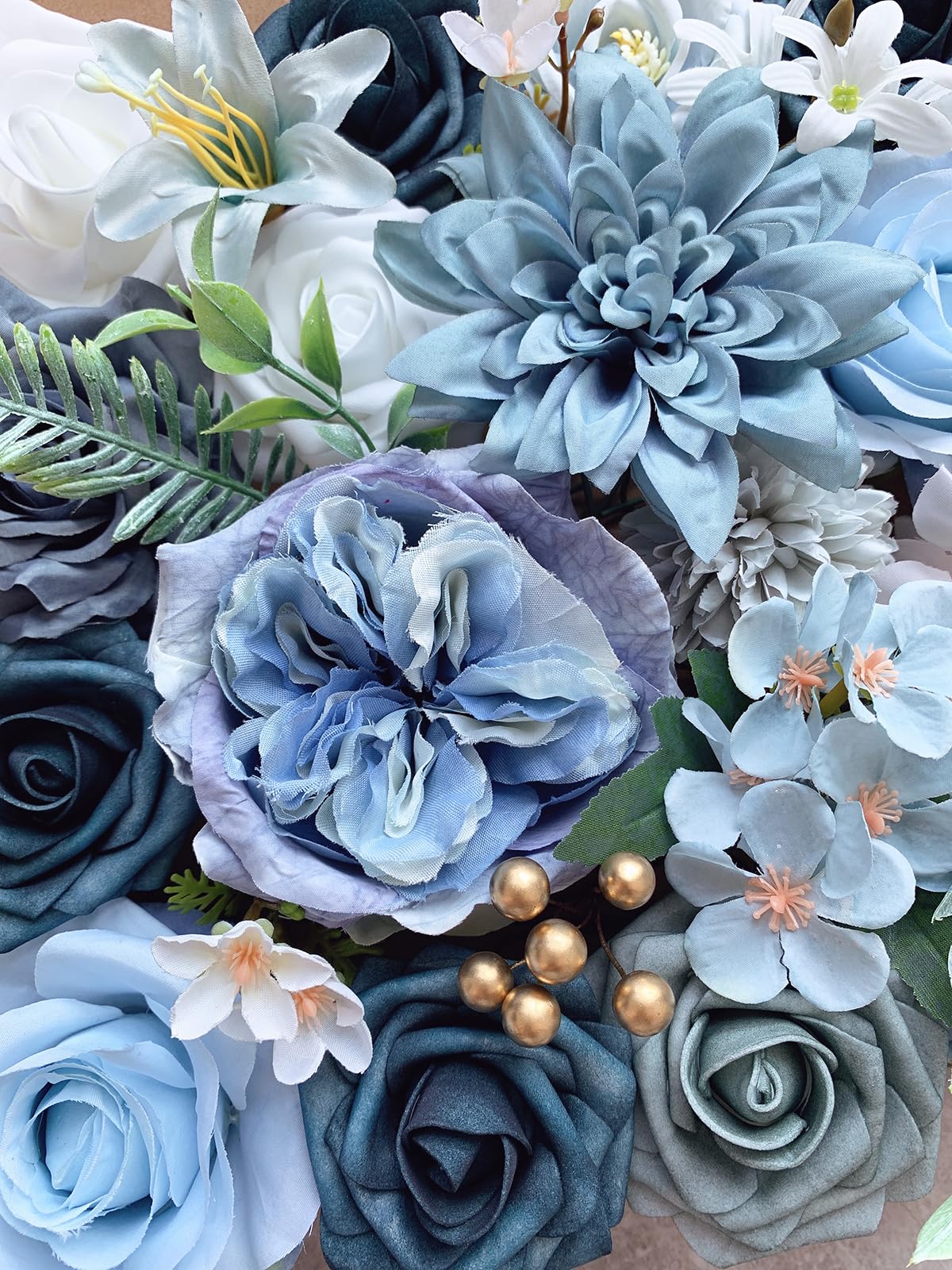 Blue Roses Artificial Flowers Set Quantity: A combo box packs a variety of flowers as vintage farmhouse or rustic themed wedding. A total of 18 blue fake flowers and 10 accessories, including mixed silk and foam blue roses artificial flowers with stems