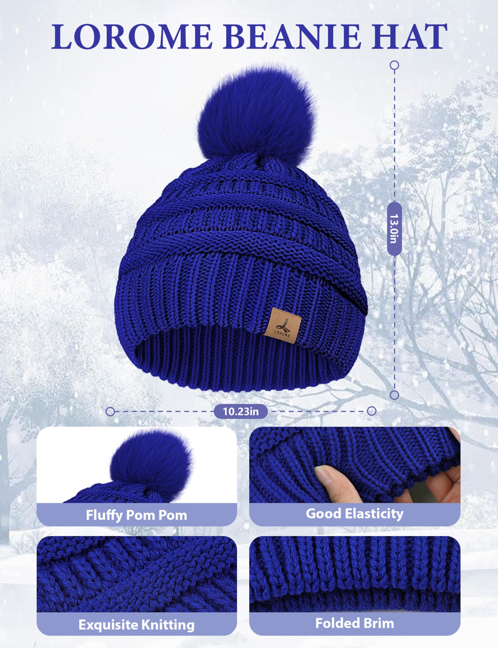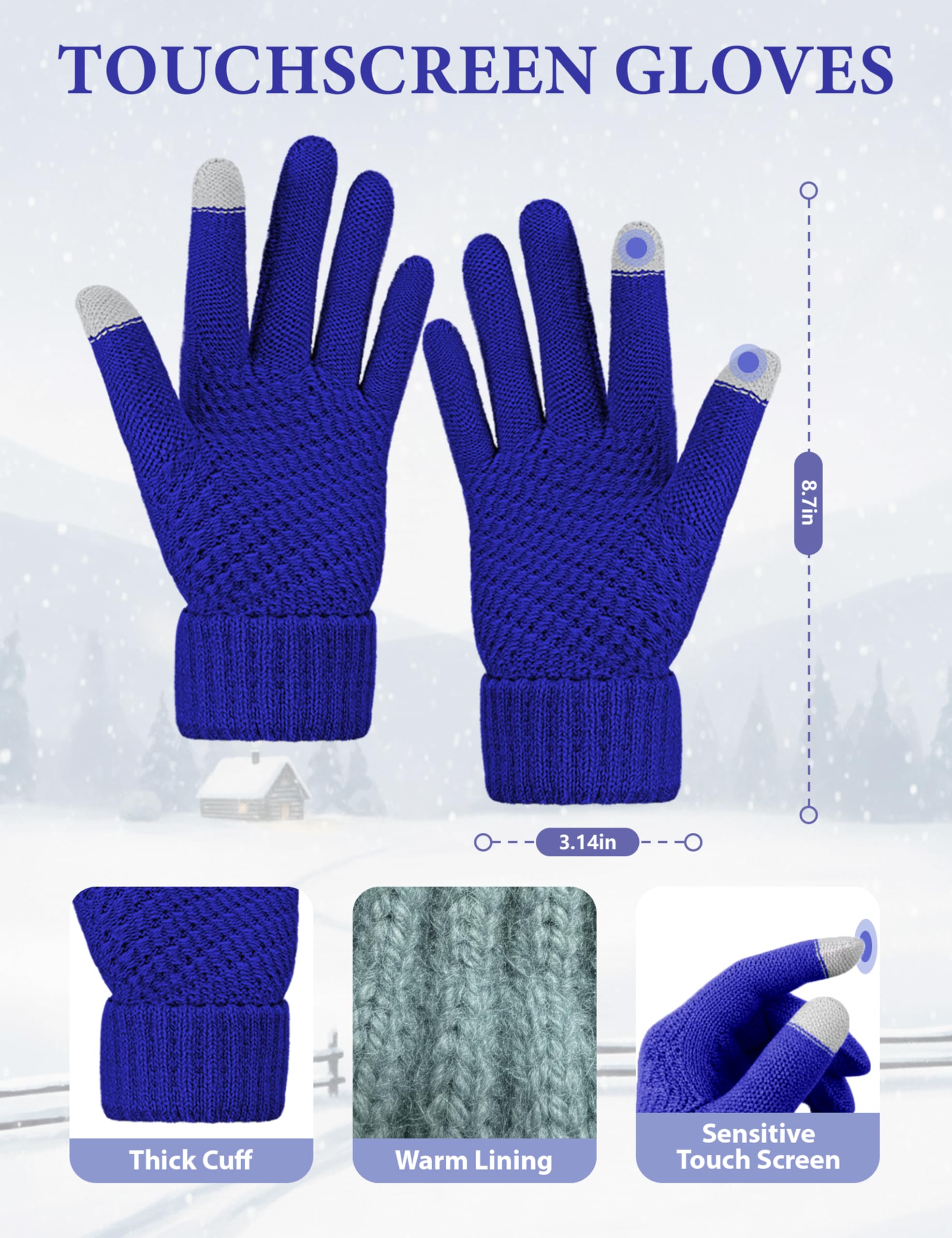 You Will Receive - This royal blue hat and glove set includes a pair of touchscreen gloves, a knitted hat, an ear muffs, and a scarf, offering a stylish way to stay warm.