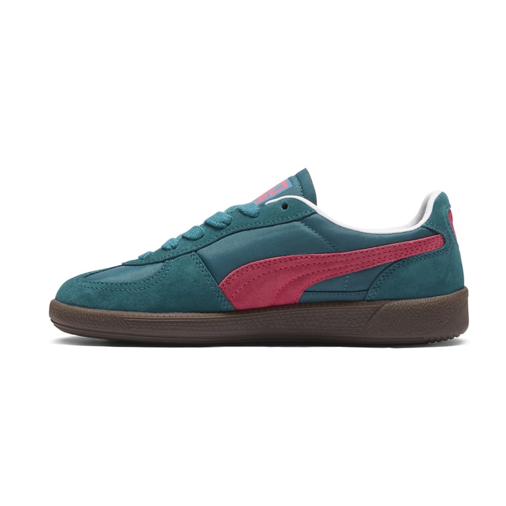 Description Straight from the archives, it’s the PUMA Palermo. This classic terrace shoe is revived today with its signature T-toe construction, plus extra-bold colorblocking and plush materials. Its design builds on PUMA’s heritage within football, while appealing to today’s sneakerheads and terrace fashion mavens. This execution features a textile base with a suede formstrip and overlays.