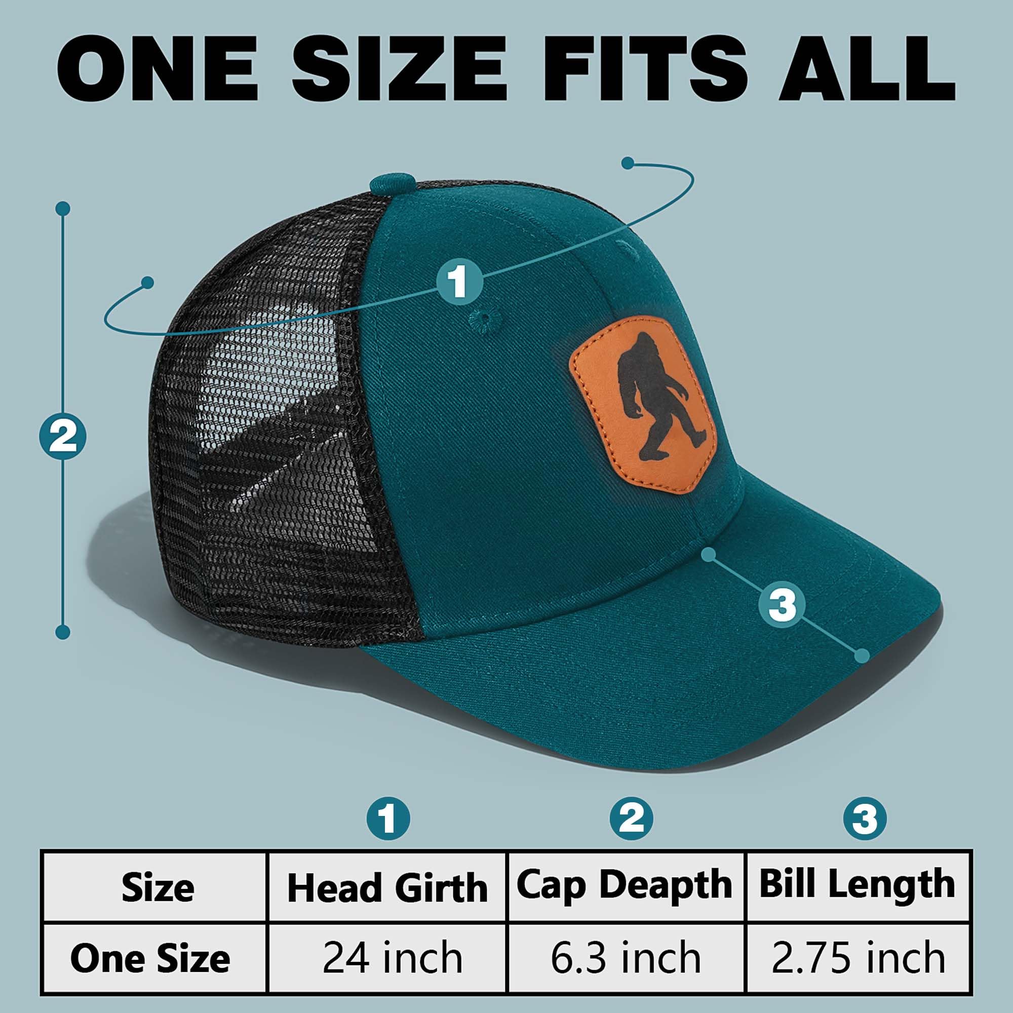 Wild Bigfoot Designs: Features an exquisite Bigfoot leather logo on the front of these leather patch hats. These Bigfoot leather patch hats will soon become your favorites. Because you will get comments and compliments on it wherever you wear these Bigfoot hats for men.
