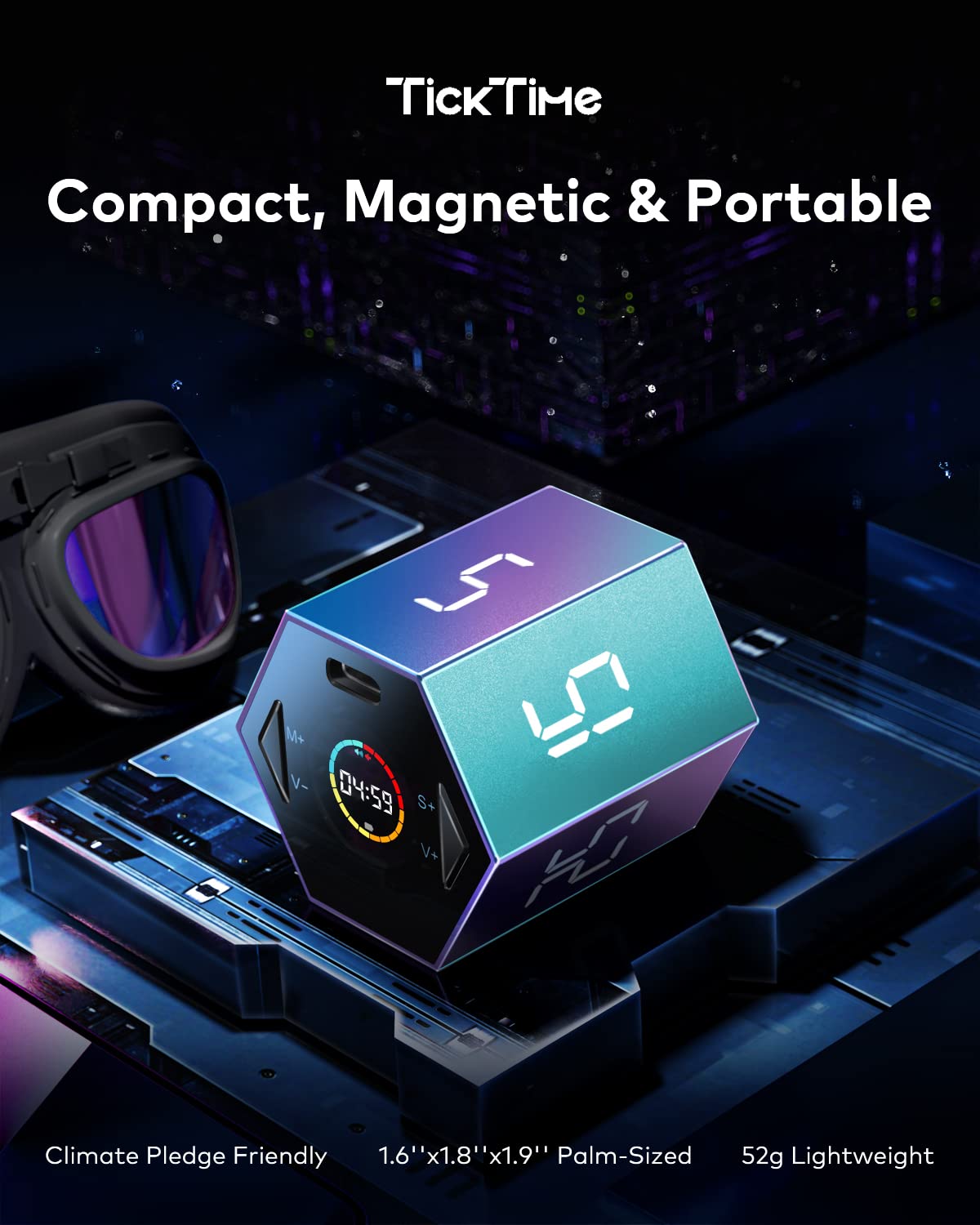 Compact & Lightweight Design for Portability: Measuring 1.9 × 1.8 × 1.7 inches and weighing only 0.1 lbs, Ticktime fits perfectly in your hand, bag, or desk space. Minimalist yet durable, it's built for mobility and comfort—perfect for work, study, or travel