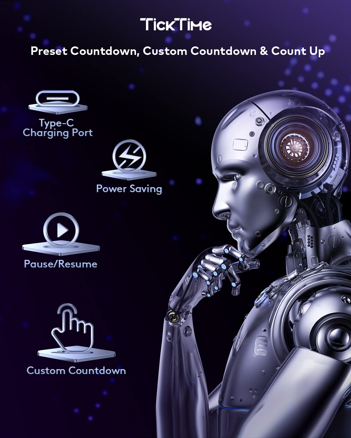 Long-Lasting Rechargeable Battery: Built-in lithium battery supports up to days of use per charge. Recharge easily via USB-C and forget the hassle of replacing batteries. Eco-friendly, efficient, and always ready for your next Pomodoro cycle or daily task