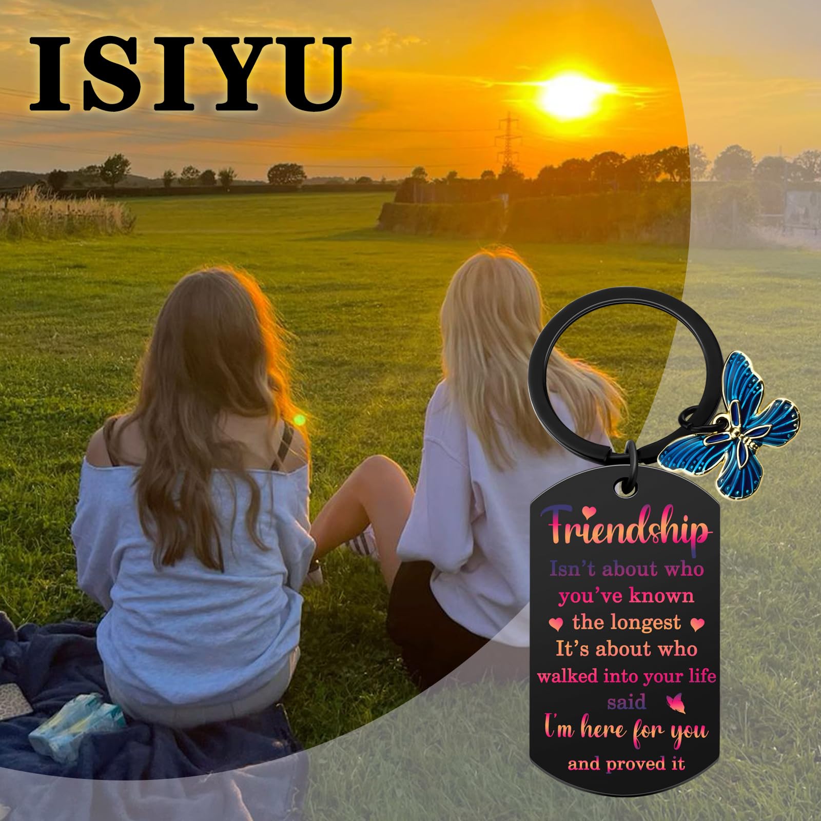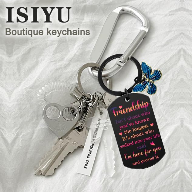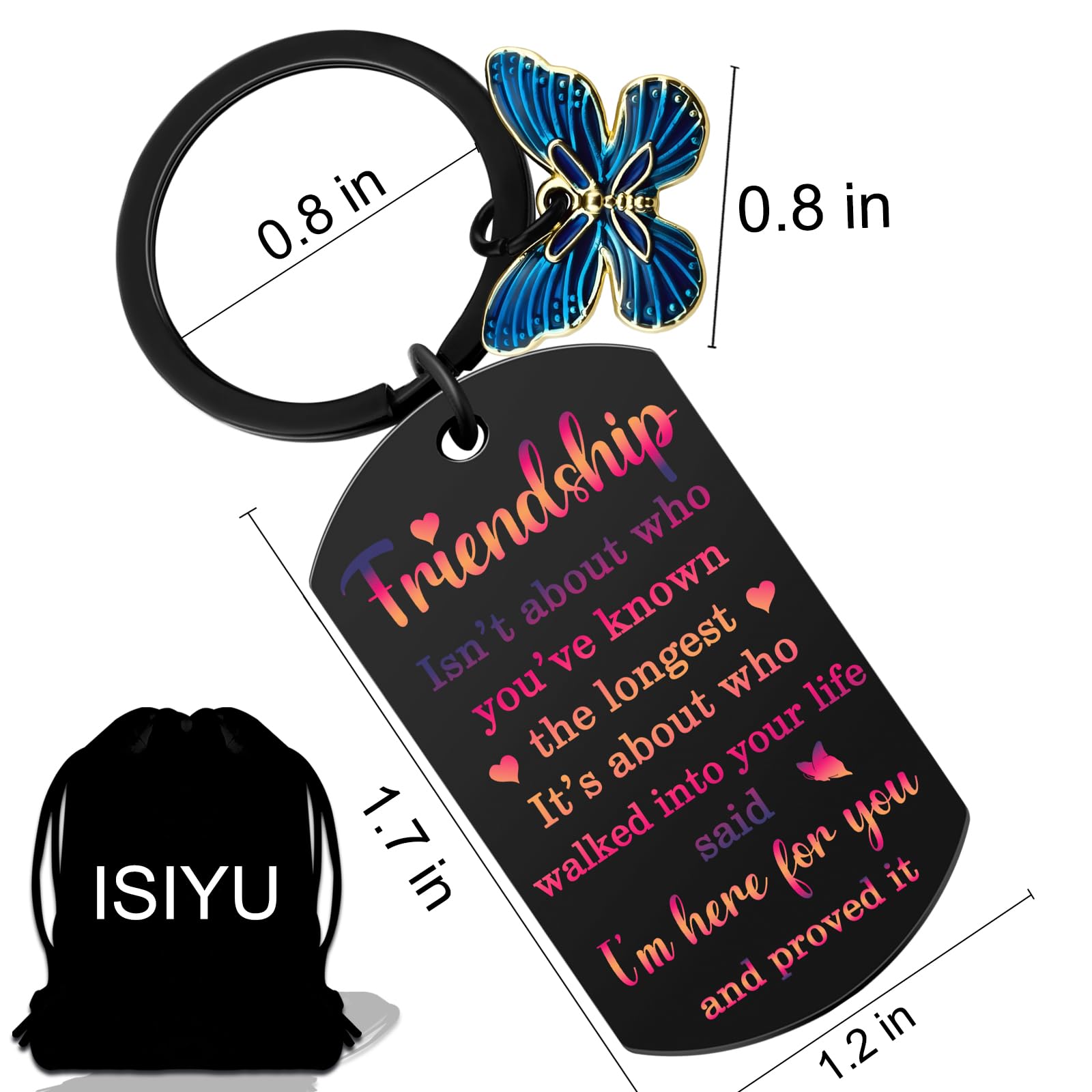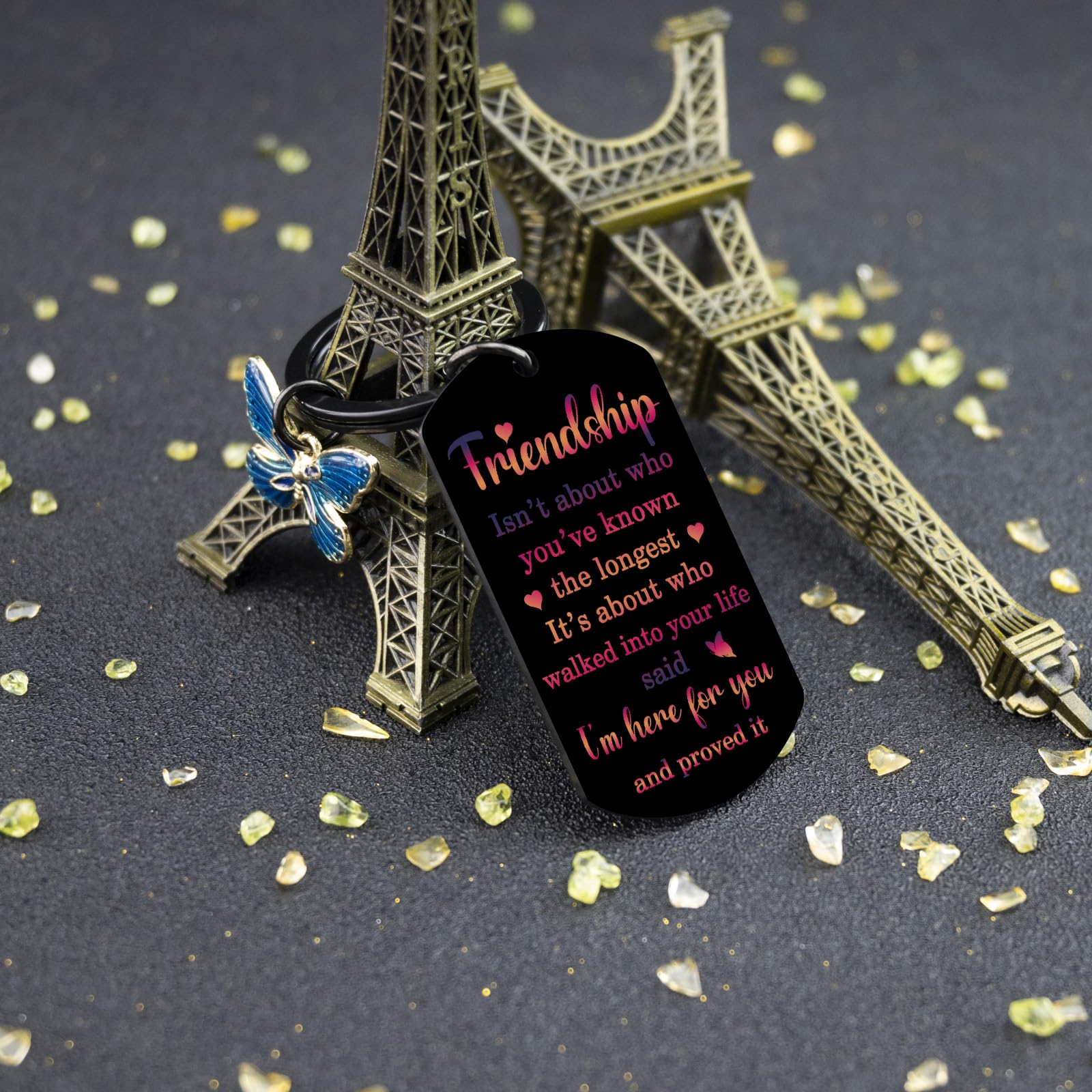 Stocking Stuffers for Friends Valentines Day Gifts Funny Friendship Keychains/long distance relationship/Stocking Stuffers for Adults : This Friendship Gifts Engraved With“ Friendship Isn't About Who You'Ve Known The Longest, It's About Who Walked Into Your Life, Said i'm Here For You And Proved It”, And It Comes With a Blue Exquisite Butterfly Accessory.