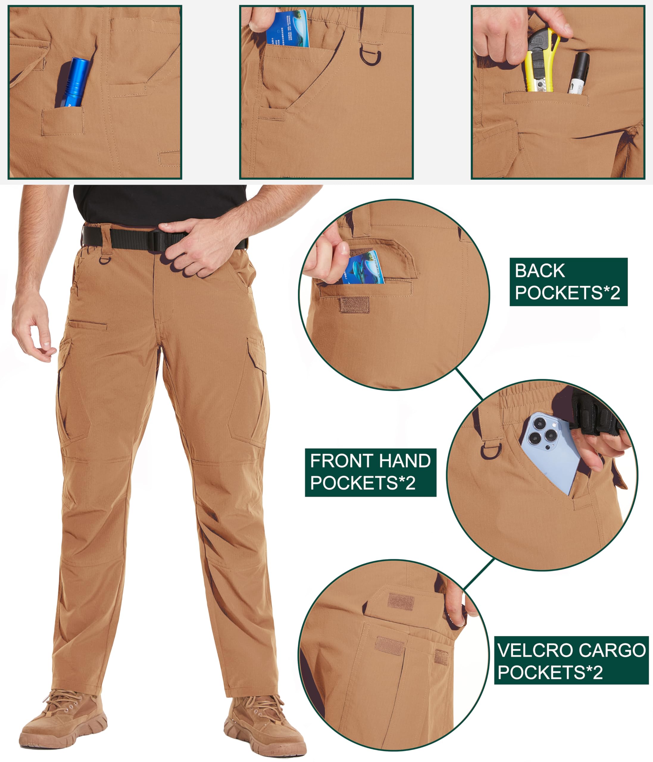 Water Resistant Work Pants: Our mens lightweight tactical pants are made of water resistant fabric, which is very suitable for working or traveling in humid environments because these water resistant hiking cargo pants can keep your legs dry, providing convenience for work and travel.