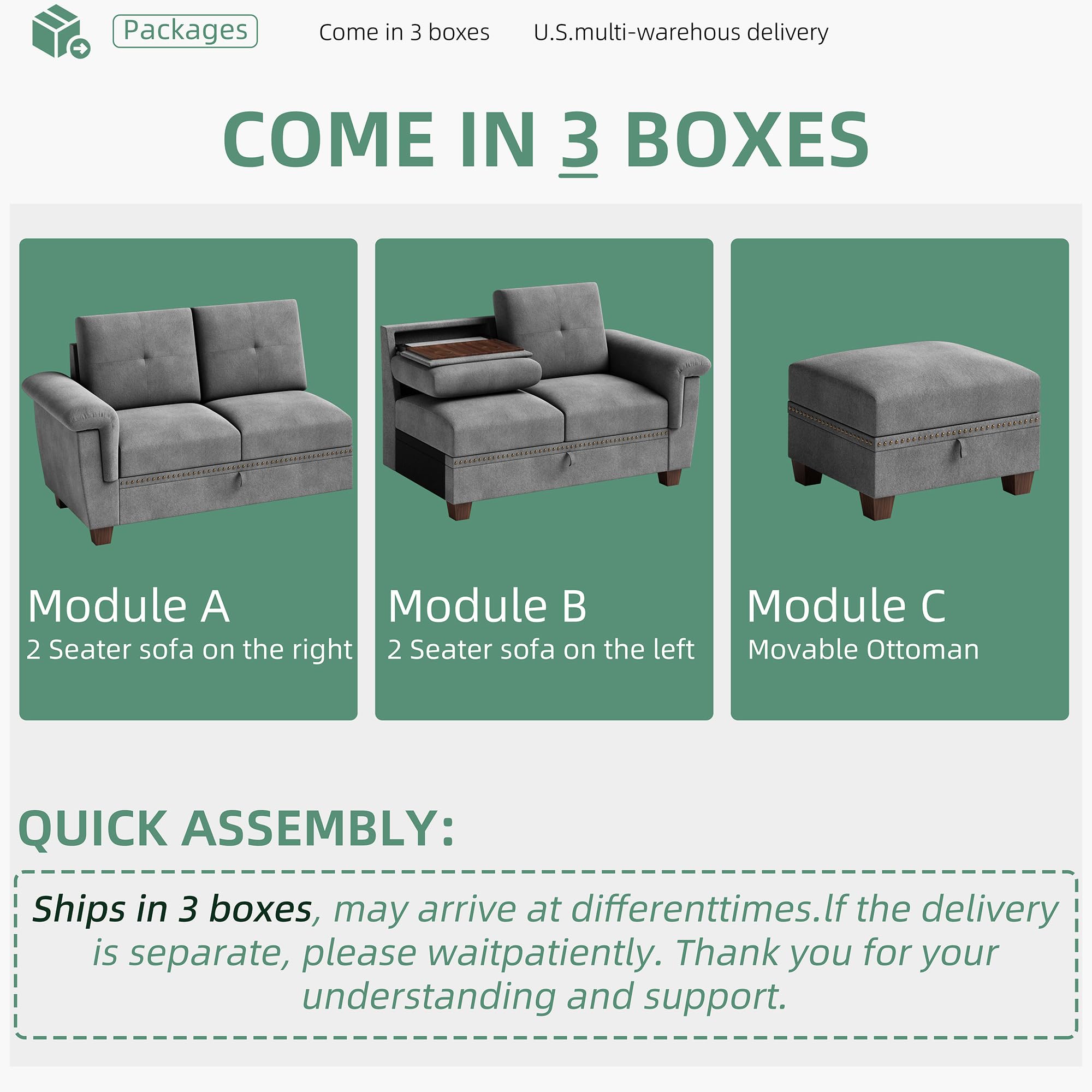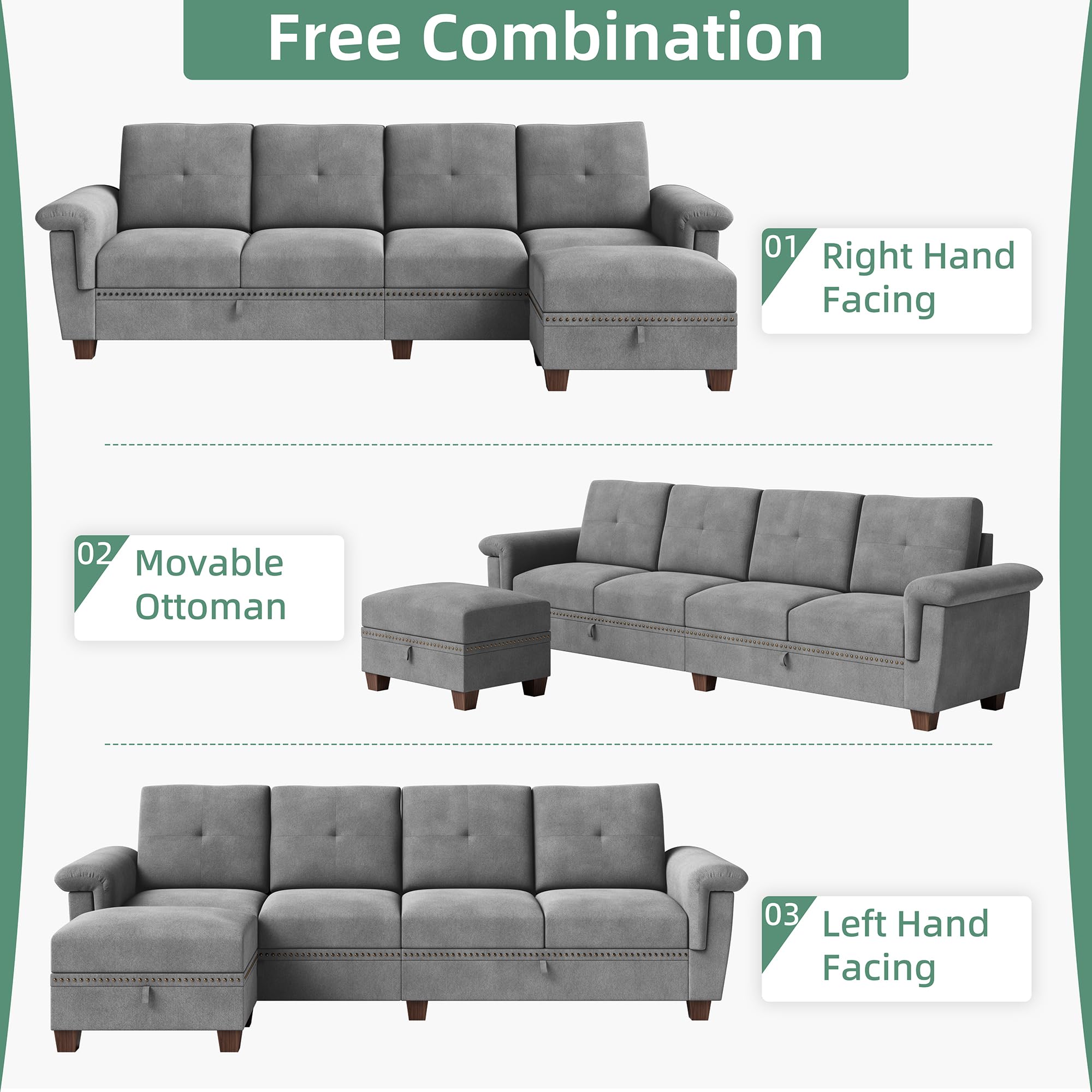 Incredibly Storage Seat: Every sofa seat has a hidden storage space, and it is large enough to put board games, blankets, pillows, CDs, decorations, and so on. A function of making your room tidy.