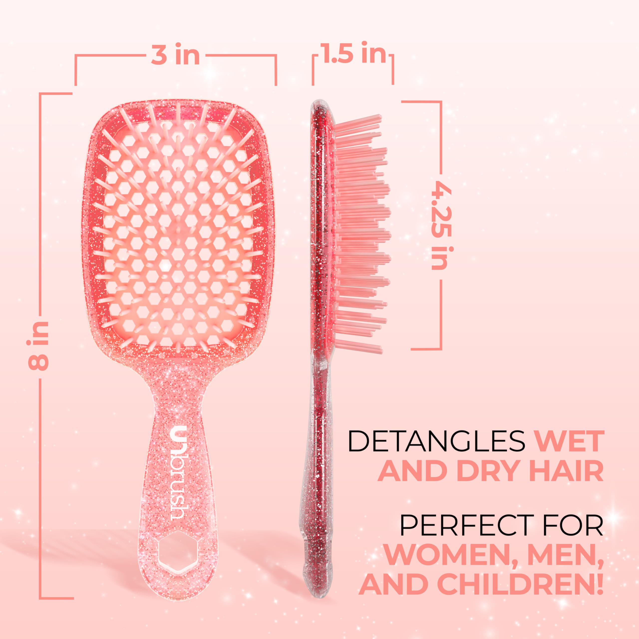 Experience the ultimate in hair care with the UNbrush Wet & Dry Vented Detangling Hair Brush. This innovative detangle brush is crafted to gently and thoroughly extract knots and tangles from even the most unruly or fine hair. Featuring a blend of 105 dual-length bristles, the UNbrush vented hair brush ensures a pain-free detangling experience while minimizing breakage. The DuoFlex Anti-Static Bristles on this detangling hair brush work like magic to gently release tangles, while the 58 long bristles easily detangle even the most stubborn hair. The 47 mini bristles smooth and polish your hair, leaving it looking and feeling silky and healthy. Whether your hair is wet or dry, this hair detangler brush works equally well, making it a versatile addition to your hair care routine. The unique backless vented cushion reduces styling time by allowing air to circulate more freely, speeding up the drying process. This hairbrush for curly hair, thin and straight, or thick hair is also incredibly easy to clean, ensuring hassle-free maintenance. Weighing only 1.5 oz, the ultra-light, high-performance handle offers durable flexibility and ease of use, making it comfortable to hold and maneuver. Ideal for women, men, and children, UNbrush is the perfect at-home or travel hairbrush designed to meet the needs of the whole family. The consistent high-quality construction and exceptional performance of this brush provide long-term value. Say goodbye to painful detangling and hello to smooth, manageable hair with the UNbrush Wet & Dry Vented Detangling Hair Brush.
