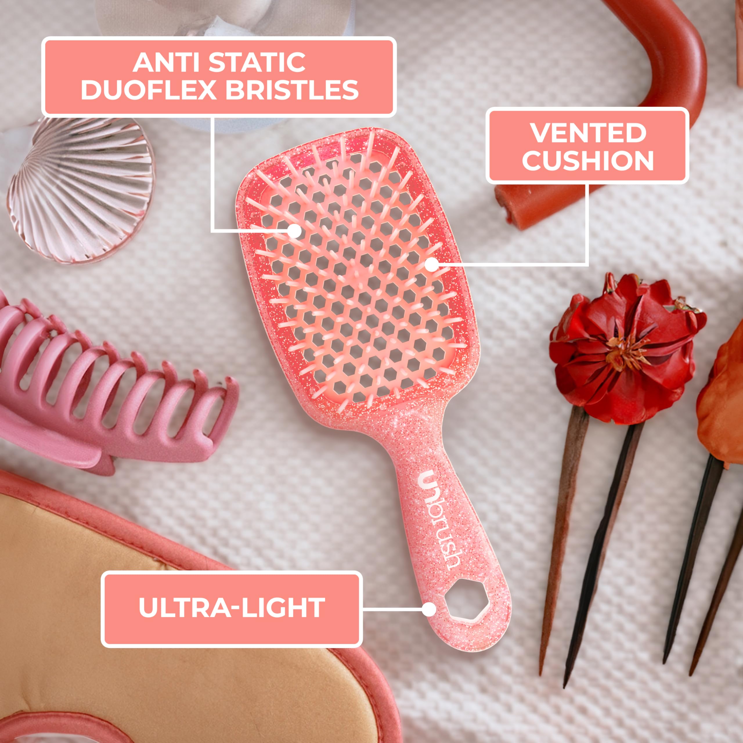 Effortless & Painless Detangling: UNbrush hairbrush with its DuoFlex Anti-Static Bristles feature reduces breakage while gently releasing tangles, perfect for curly, thick, or fine hair types.