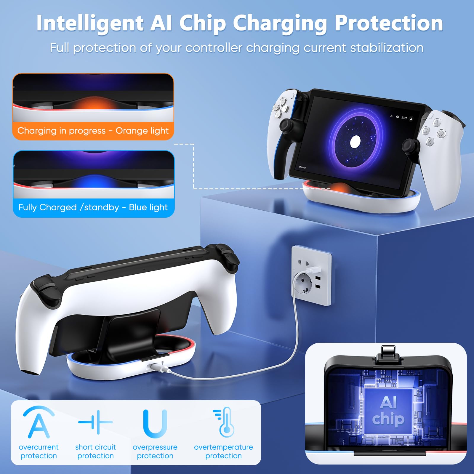 𝙎𝙩𝙖𝙗𝙞𝙡𝙞𝙩𝙮 & 𝘼𝙣𝙩𝙞-𝙎𝙡𝙞𝙥 𝘿𝙚𝙨𝙞𝙜𝙣 𝙎𝙩𝙖𝙣𝙙: The charging stand is engineered with additional weight and an anti-slip design, ensuring a stable and secure base that perfectly complements your Ps portal charging dock station, making it a standout addition to your gaming setup