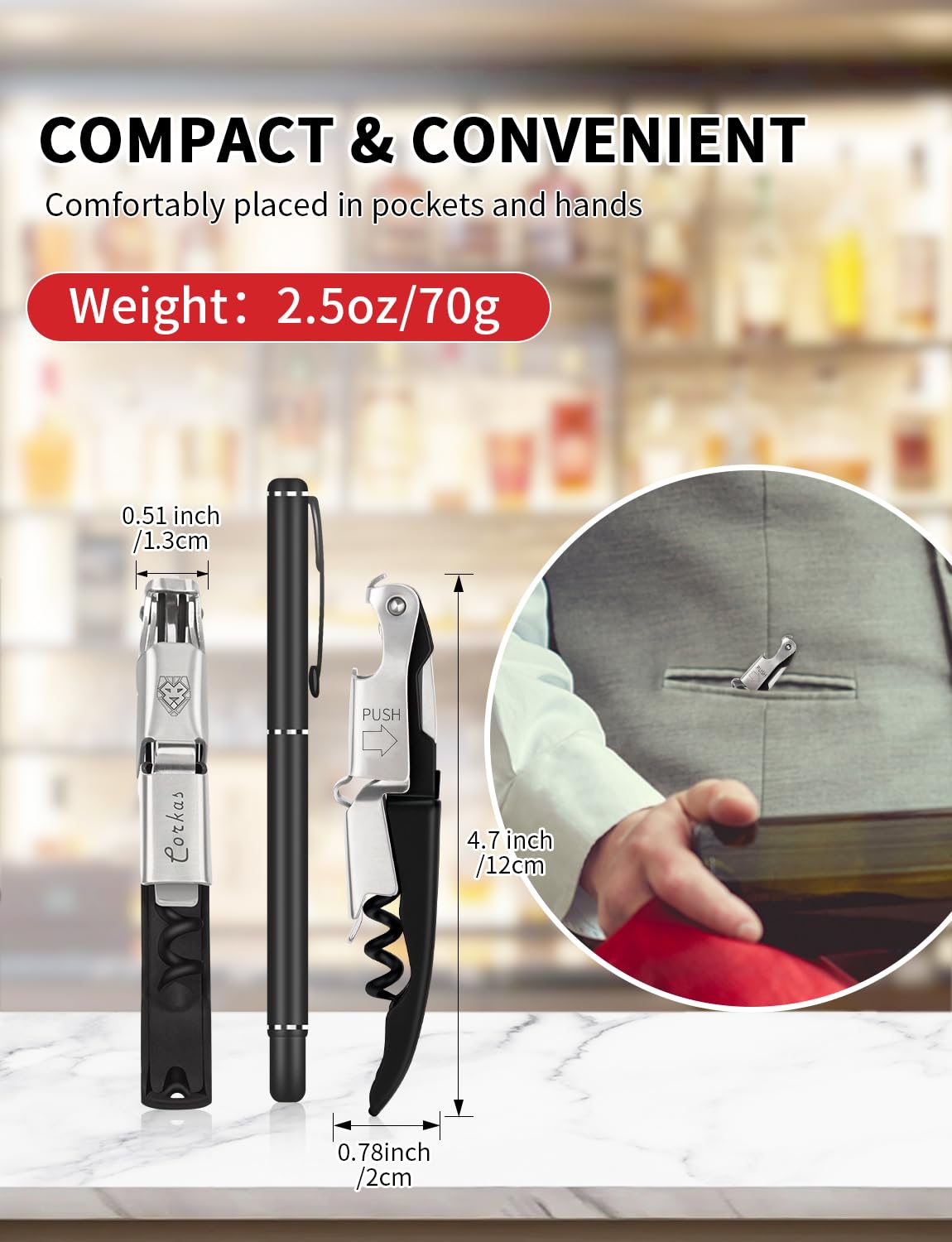 ✅【THE IDEAL WINE LOVER'S GIFT】This beautifully crafted, multifunctional tool is a thoughtful and practical present that will be appreciated for years to come. The CORKAS corkscrew wine opener elevates the wine drinking experience, makes an perfect gift for wine lovers. Ideal Father’s Day, Mother's Day, Christmas, Birthday, bridesmaid or groomsman gifts for men, women and sommelier, bartender, servers, any wine enthusiast. Great party supplies.