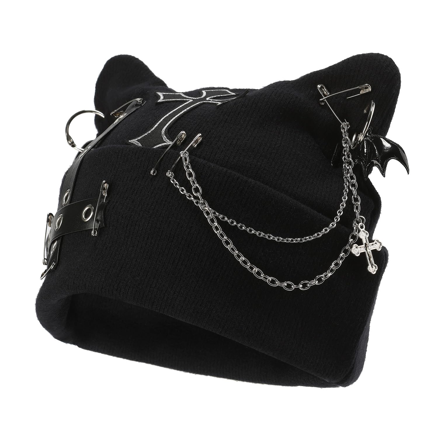 THESSNCE Y2k Punk Grunge Hat Denim Bunny Hat Chains Distressed Baseball Cap Kpop Outfits for Women (US, Alpha, One Size, Black Star)