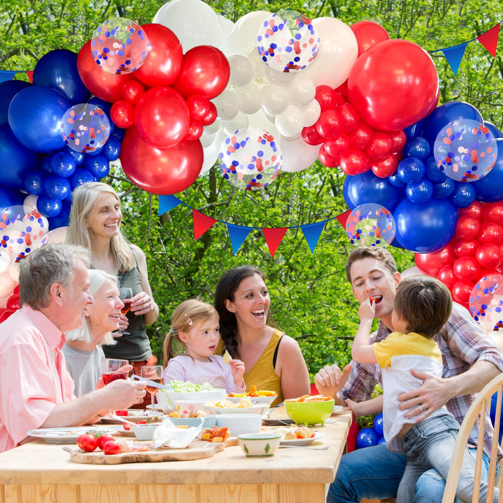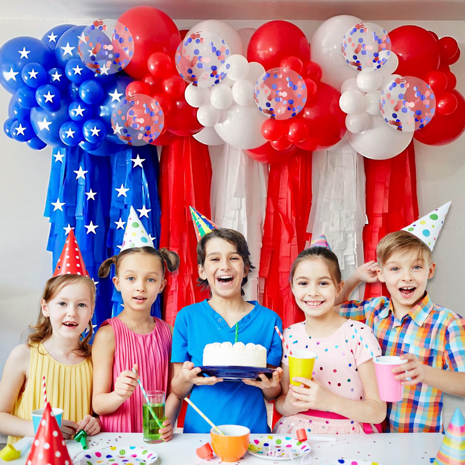 Ease of Assembly: Our red and blue balloons kit comes with ribbons and glue dots to help you create the 4th of july balloon garland. Inflate the balloons of all colors, then use ribbon to secure them. The glue dots can help secure the balloons in place better! Your beautiful party decoration will be ready in no time