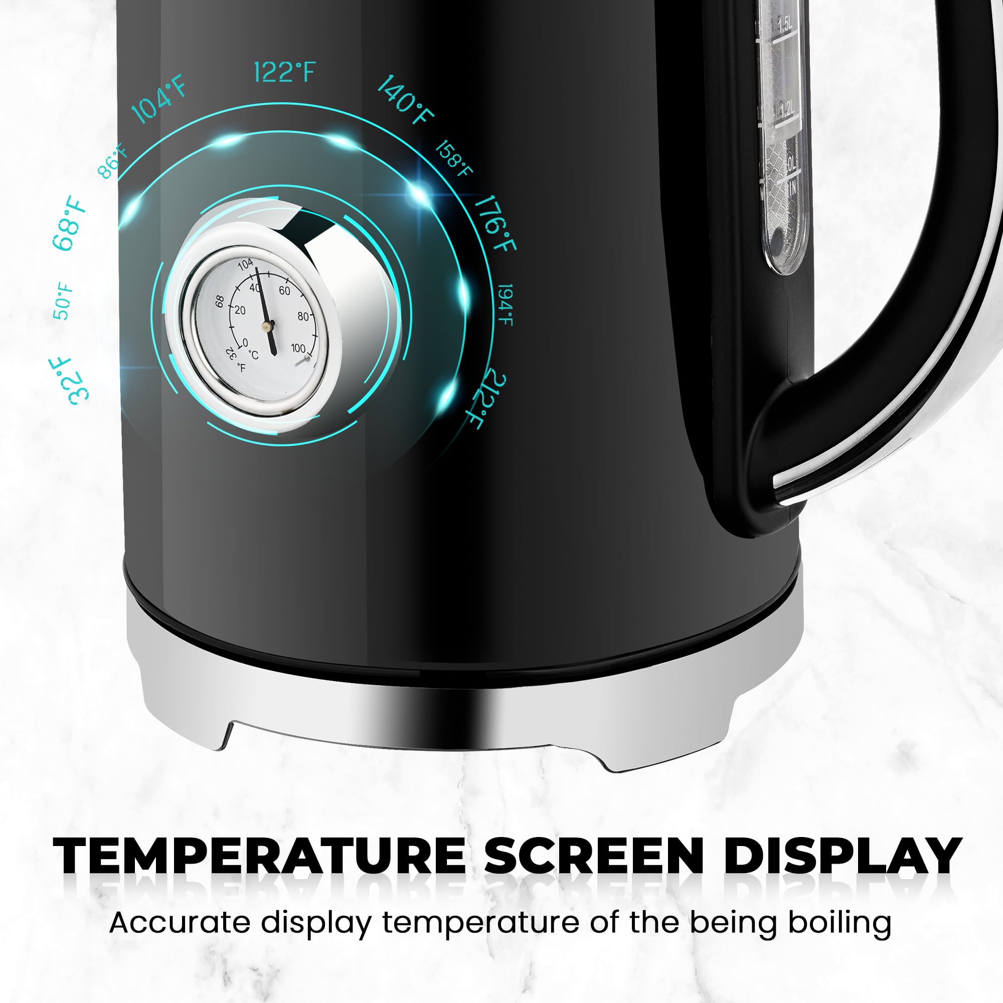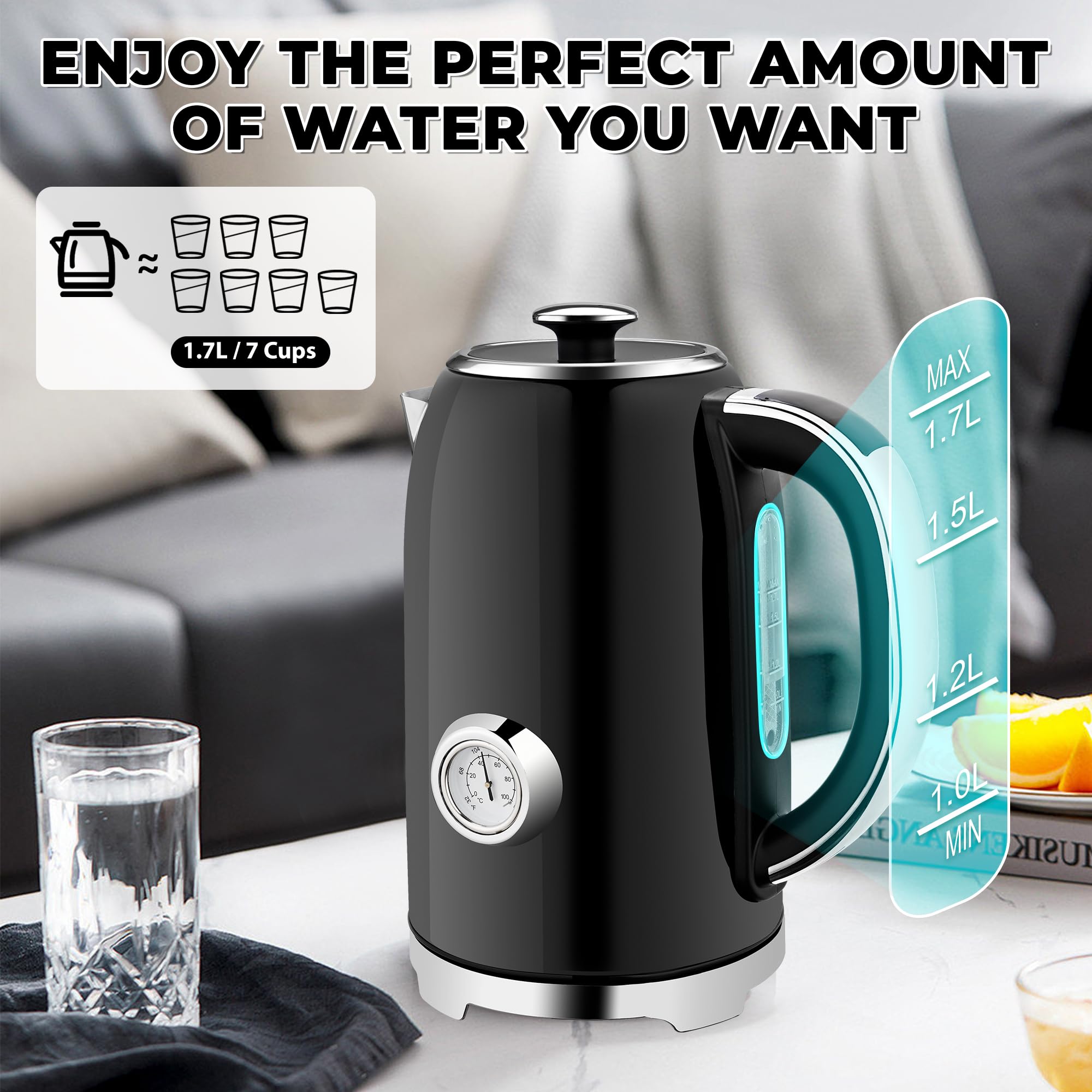 EFFICIENT BOILING & SAFE TO USE : This electric tea kettle can boil up to 1.7 liters of water in just 5-6 minutes and is faster and safer than stovetop kettles. The kettle teapot Built-in automatic power-off and anti-dry boil function protects you and gives you more time to focus on other things. Plus, the smart LED operation screen, making it easy to operate even at night