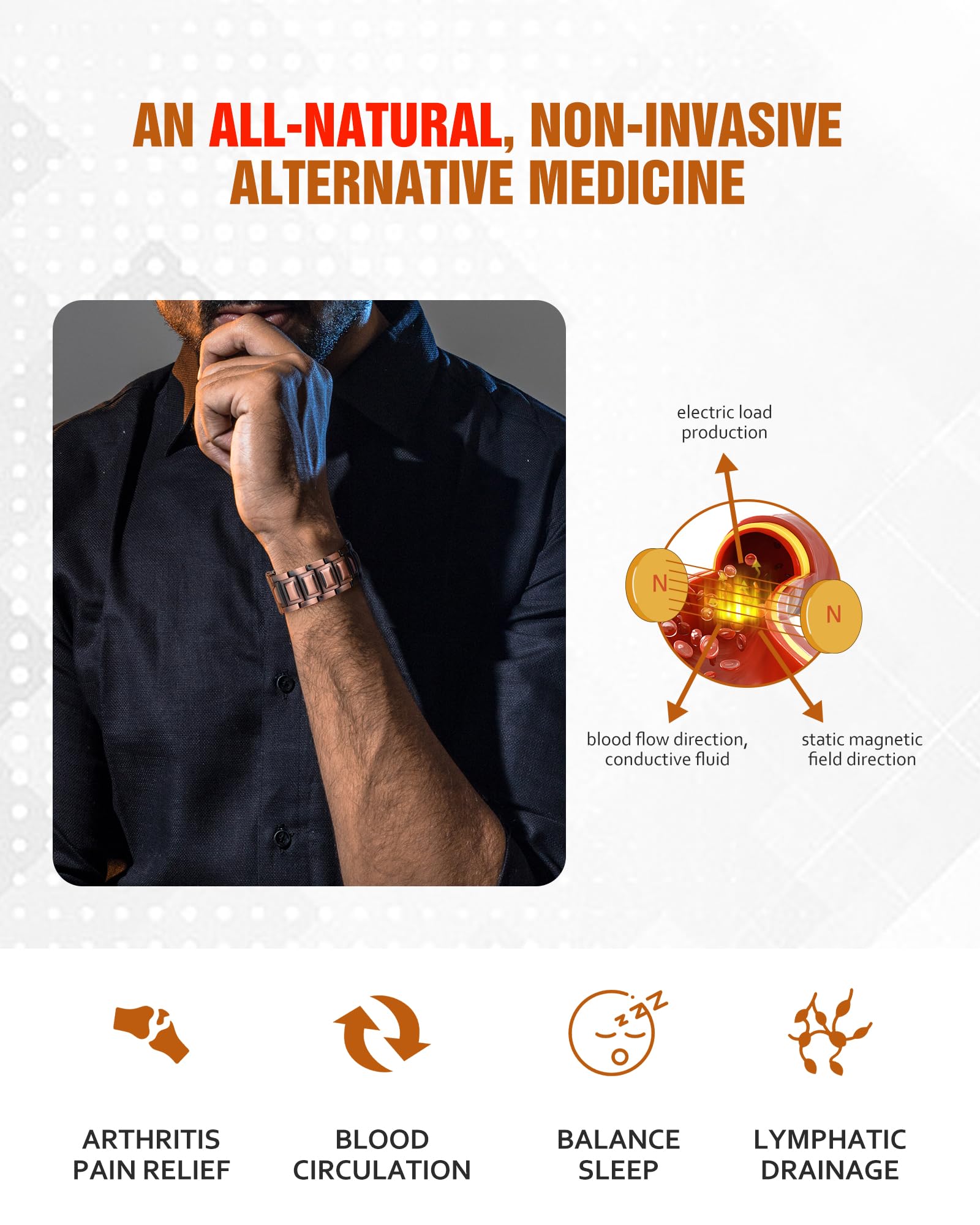 [UNCOMPROMISED QUALITY] Our magnetic bracelets on featuring three powerful neodymium magnets per link (3,800 gauss each), designed to reducing discomfort. Your body will be more receptive to this all-natural, non-invasive alternative.