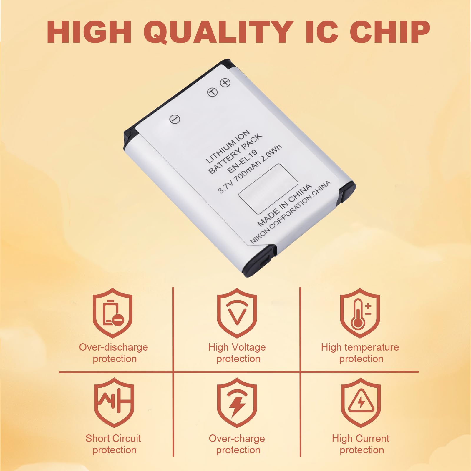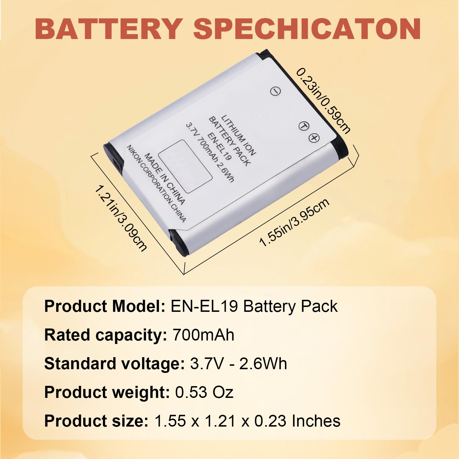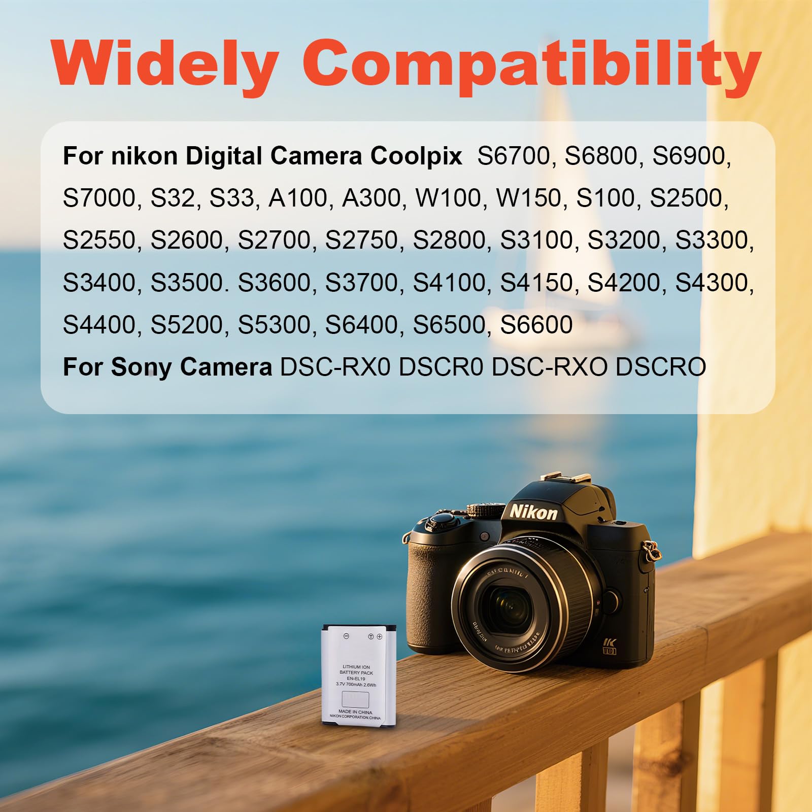 Precise Compatibility: EN-EL19 lithium ion battery pack for nikon Coolpix S6700, S6800, S6900, S7000, S32, S33, A100, A300, W100, W150, S100, S2500, S2550, S2600, S2700, S2750, S2800, S3100, S3200, S3300, S3400, S3500, S3600, S3700, S4100, S4150, S4200, S4300, S4400, S5200, S5300, S6400, S6500, S6600 Digital Camera.