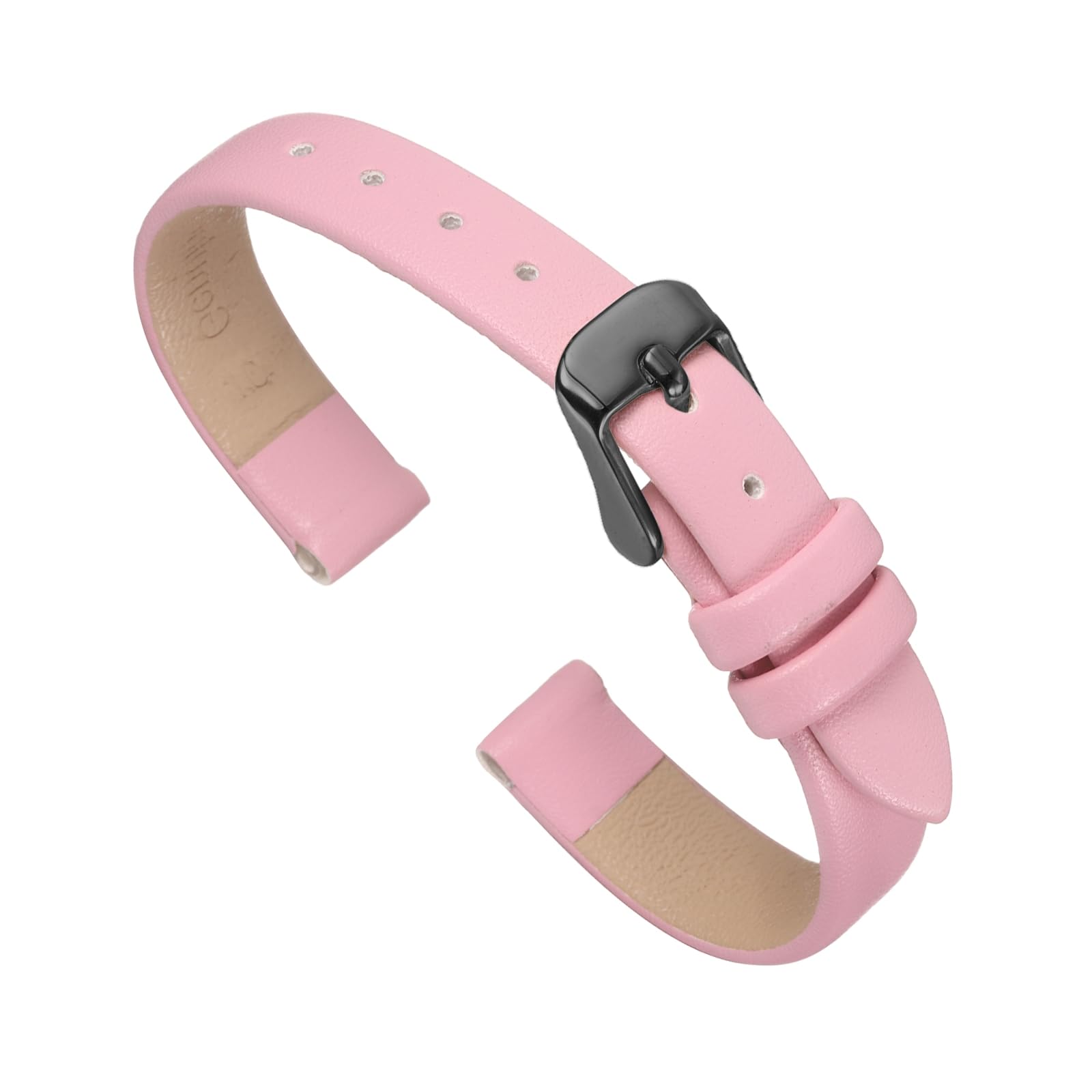 uxcell Pink Genuine Leather Band 10mm Width, Flat Thin Elegant Leather Watch Strap Black Buckle for Men and Women