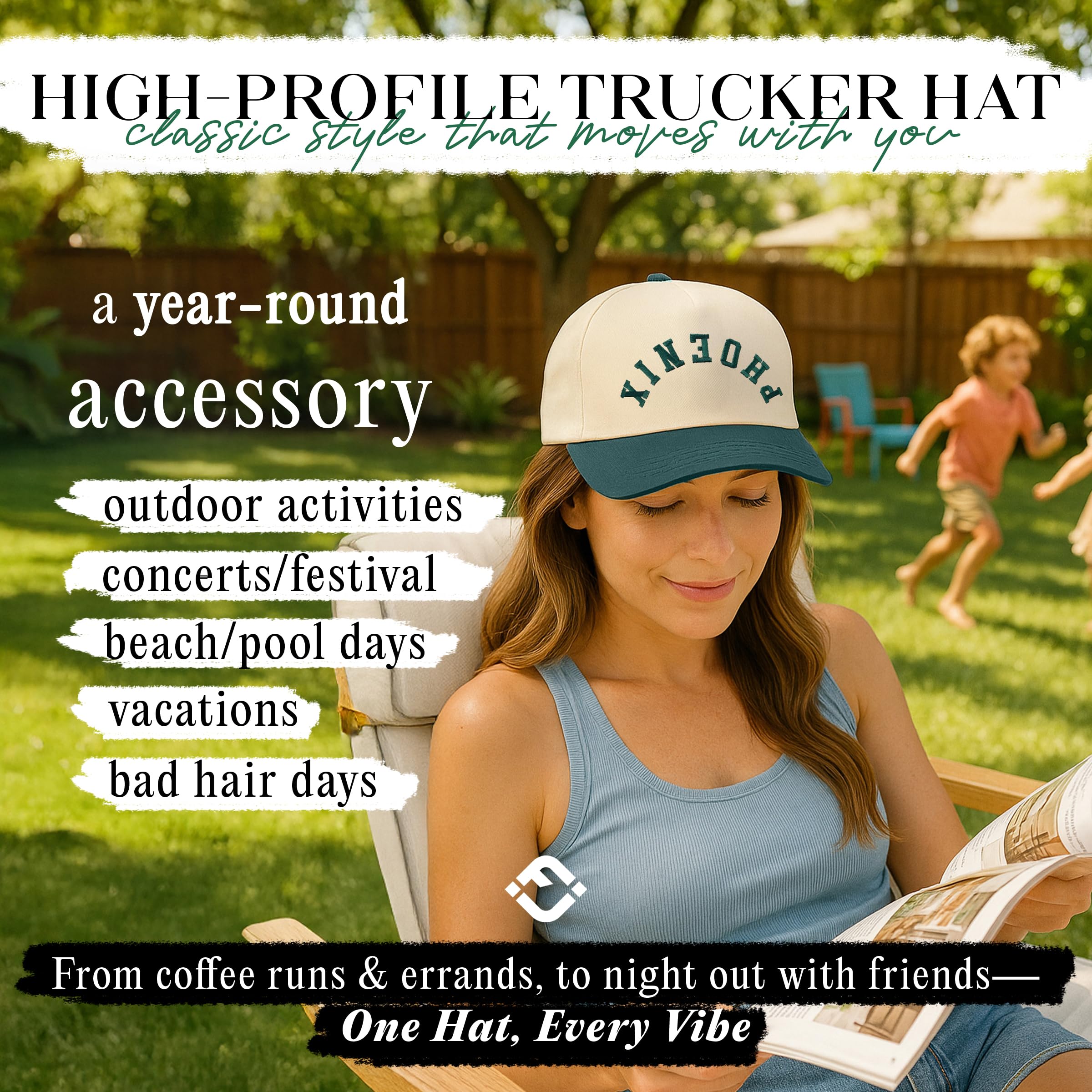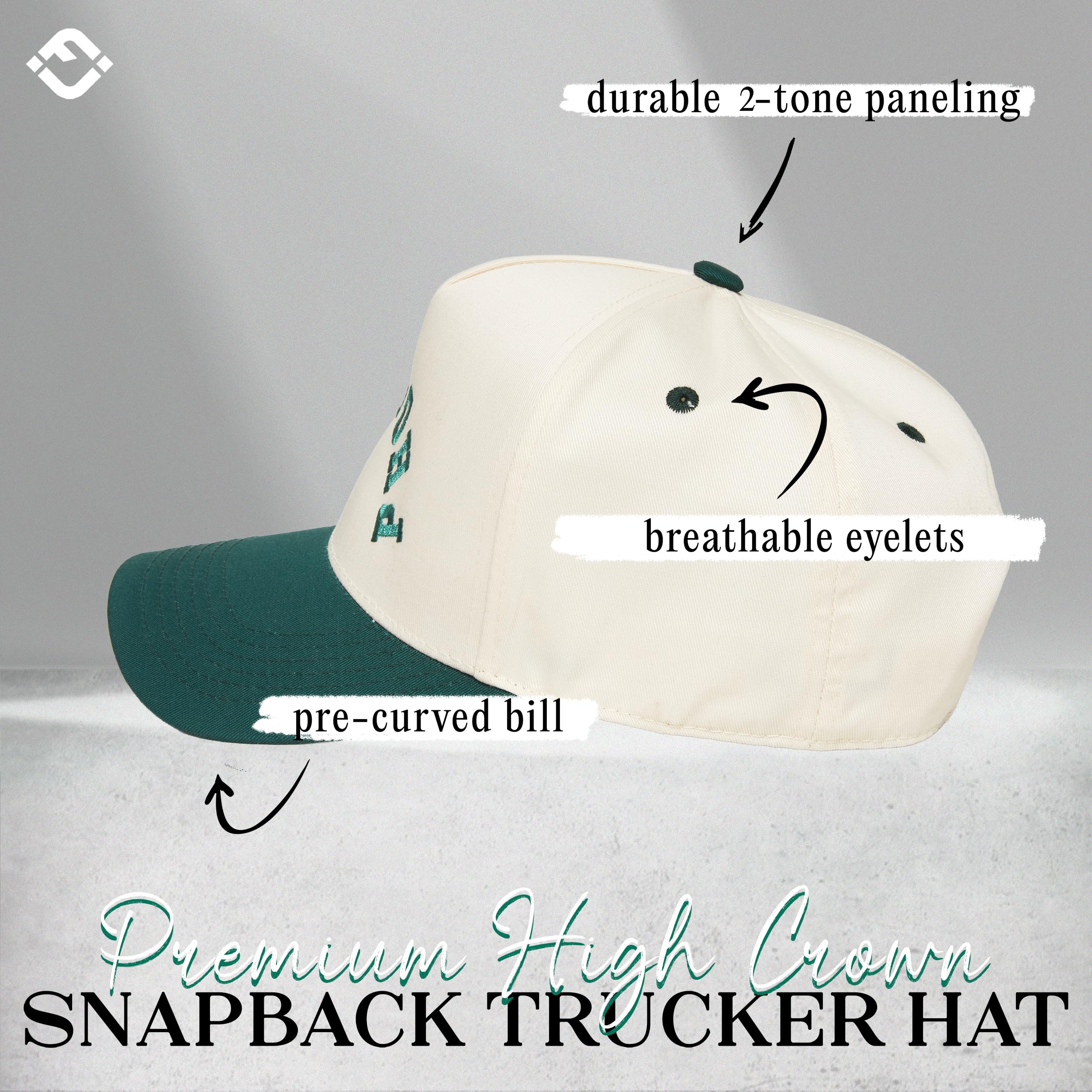 PREMIUM QUALITY: Made from a durable blend of 35% cotton and 65% polyester, this embroidered hat is lightweight, breathable, and comfortable for all-day wear. Its structured fit with a curved brim ensures it holds its shape, making it a top choice for beach trucker hats for women and mens trucker hats alike.