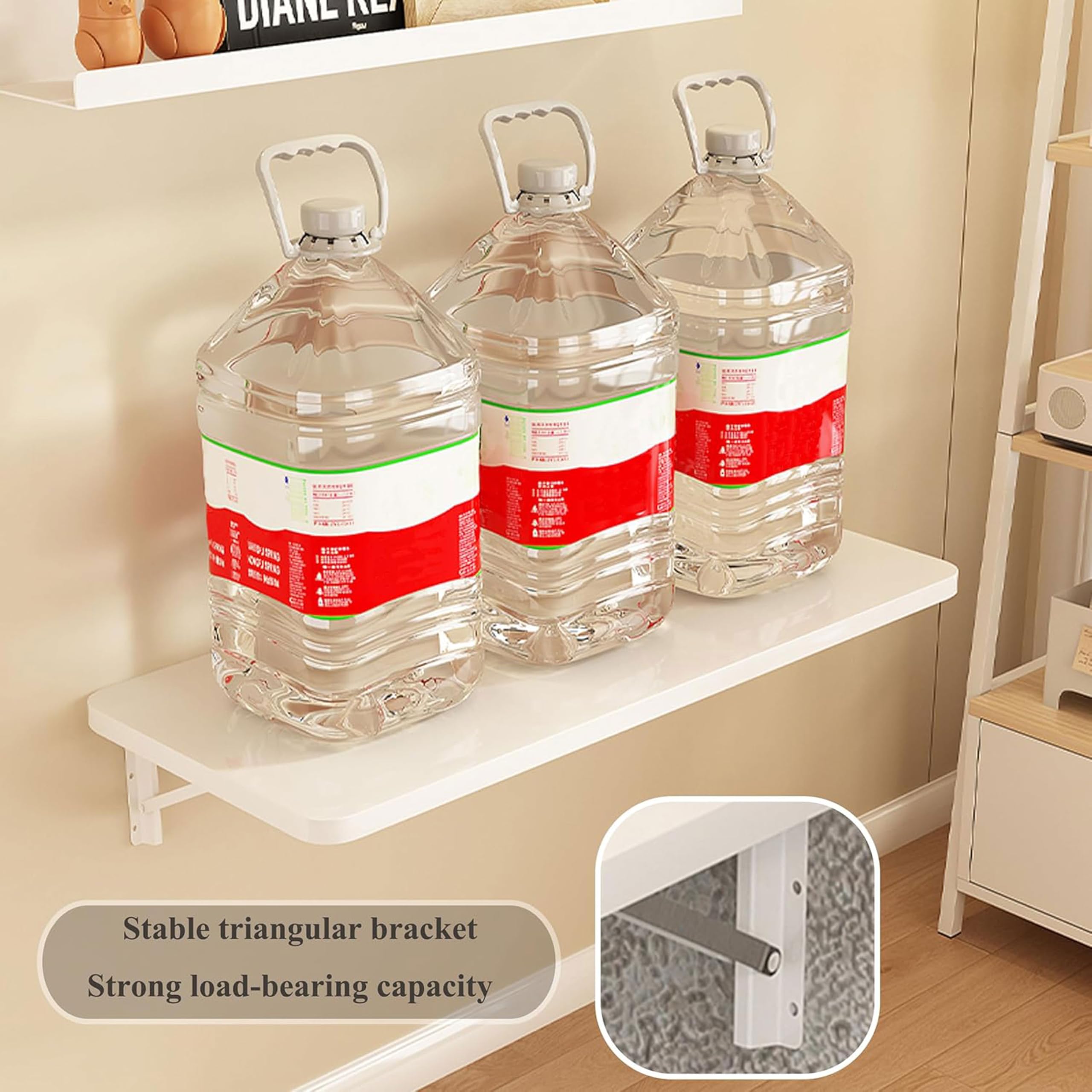 【Foldable design】:Fold up to use, down to store .Fold down to the wall using a simple fingertip release mechanism,Simple to use.This wall mounted desk can greatly save floor space