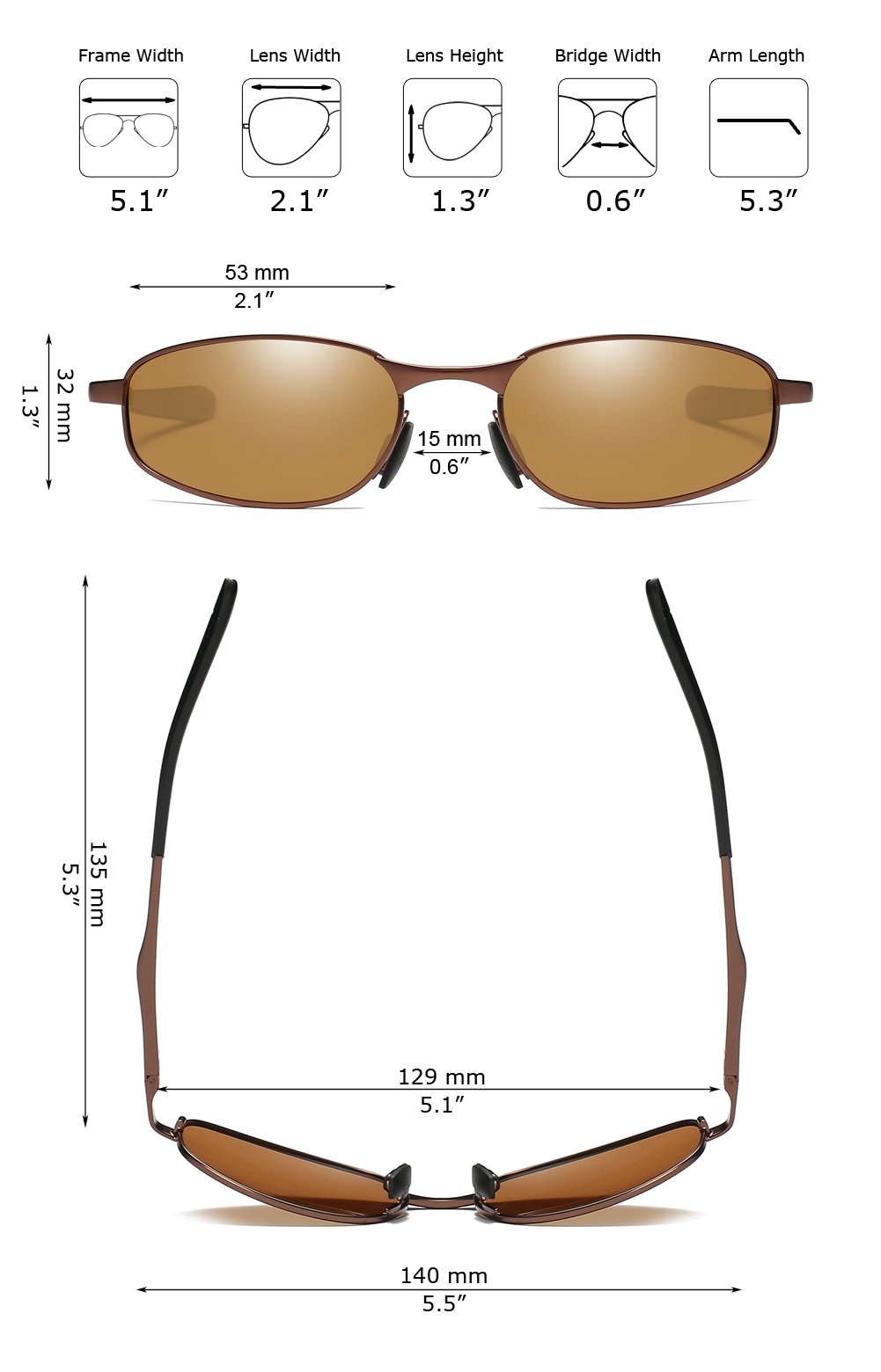 【Brown/Amber polarized lens】----Enhances contrast,contains a red element to improve depth perception. It is recommended to use under sunny and partly cloudy condition. Best choice for driving, fishing or water sports, golf, outdoor sports on grass field, shooting and tennis.
